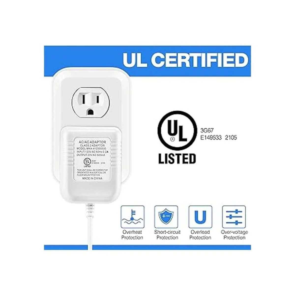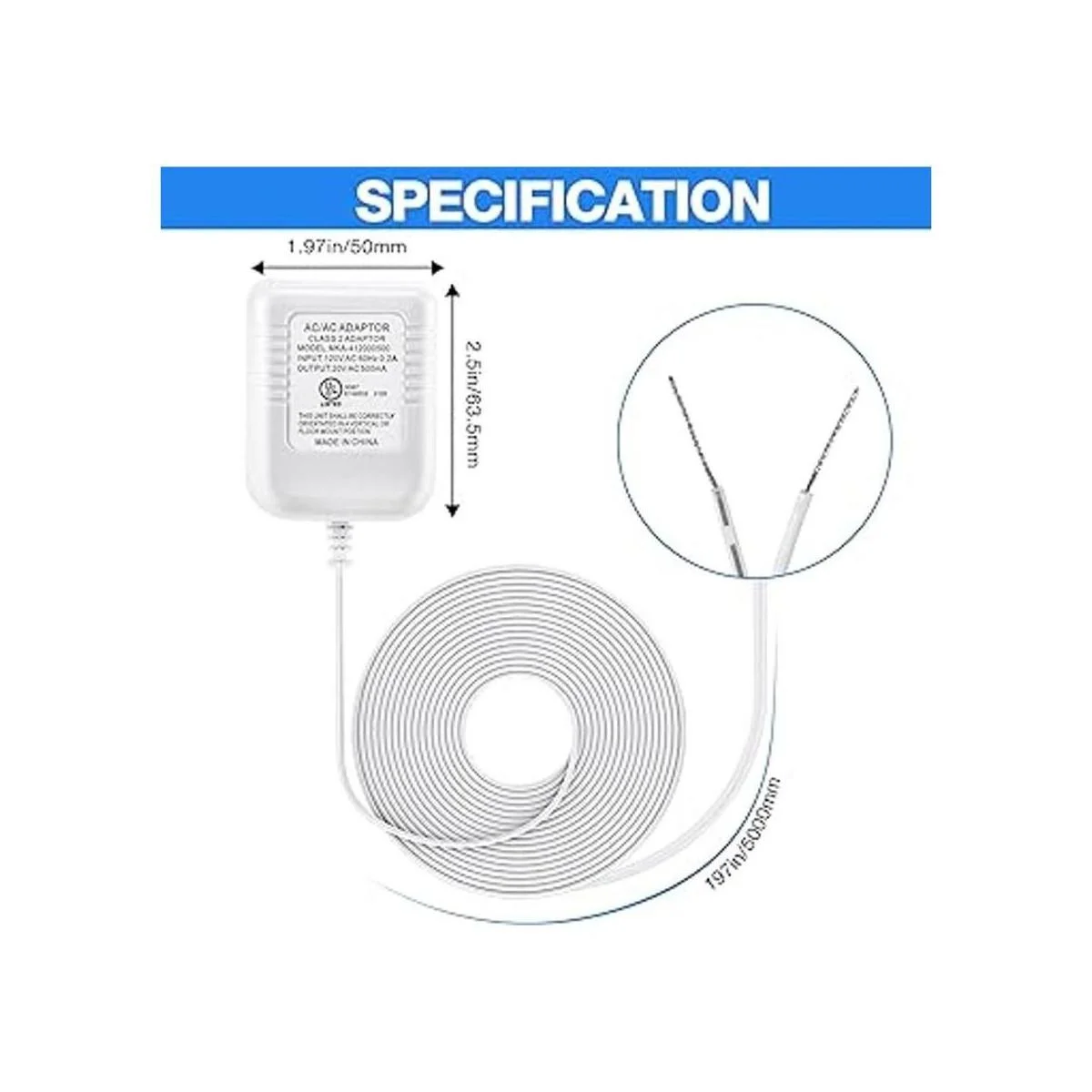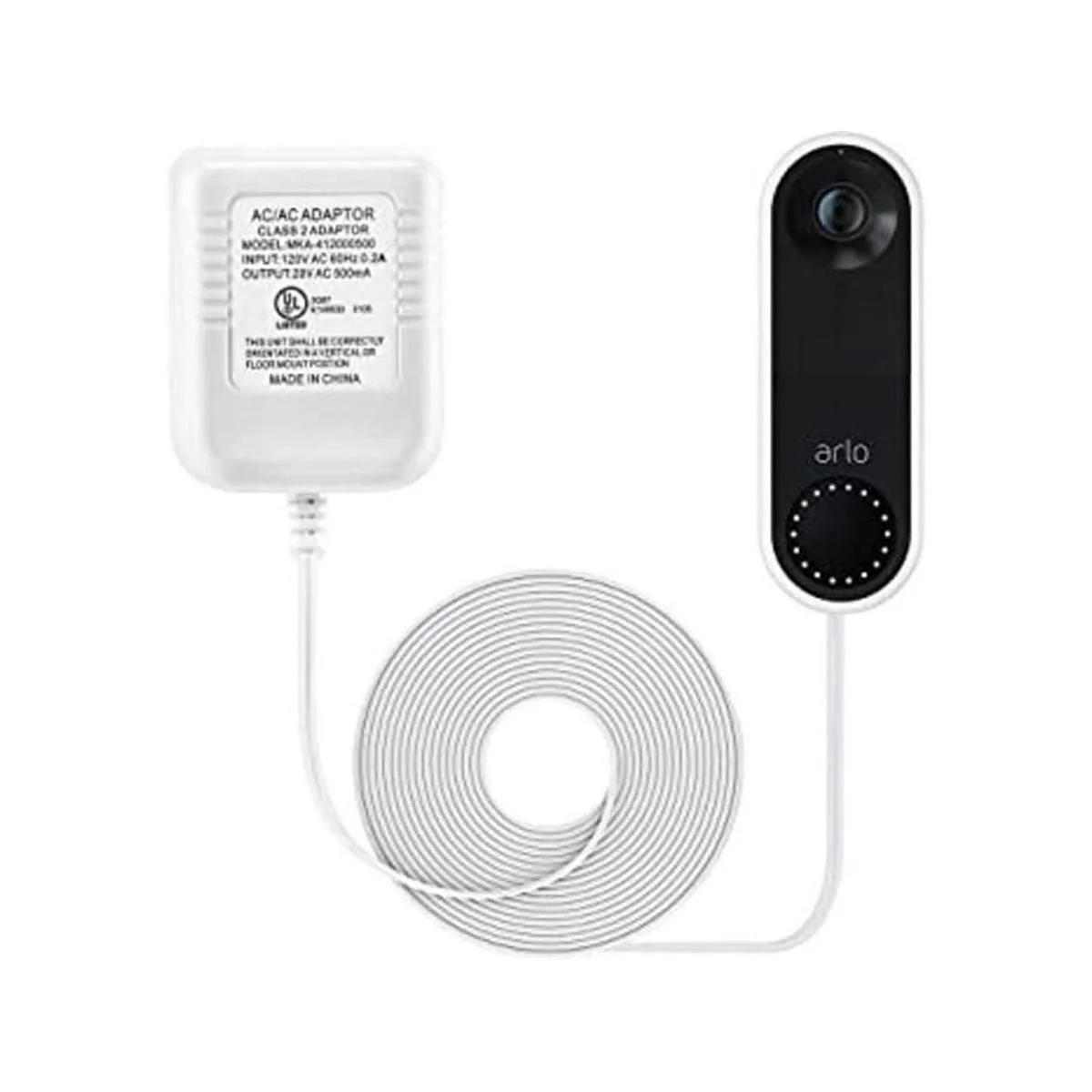 Transformador de 1624 voltios, adaptador de corriente de cable C compatible con el timbre de video Arlo, transformador certificado de 20 V CA y 500 mA con fuente de cable de 16.4 pies de alimentación compatible con Arlo HD Audio Chime