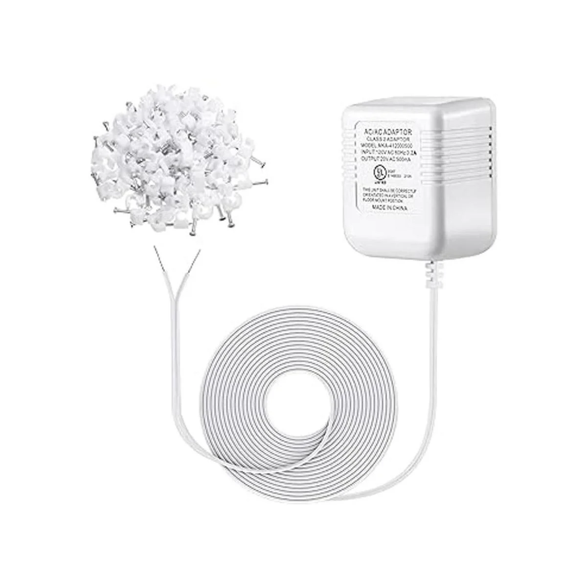 Contenido del paquete: 1 fuente de alimentación para timbre, 1 bolsa de 50 clips de cable blancos; la marca mencionada anteriormente es solo para demostrar compatibilidad