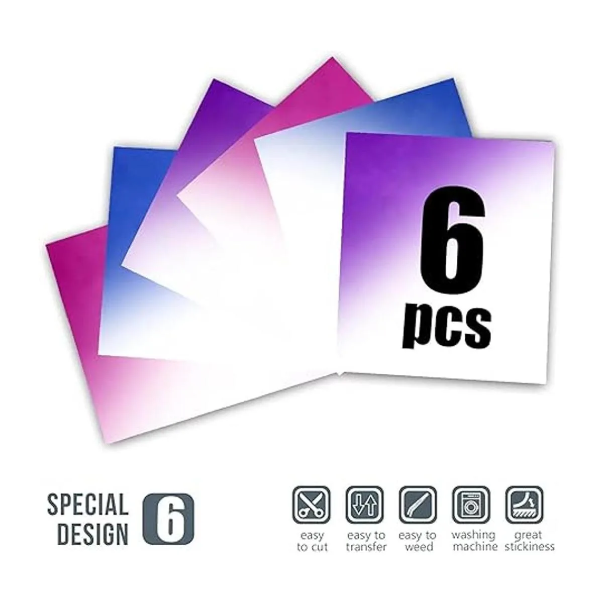 TransWonder Vinilo de transferencia de calor 3D que cambia de color, 6 hojas de vinilo de transferencia de calor que cambia de color, 12 x 10 pulgadas, para Cricut prensa de calor, camisetas de bricolaje, regalos para Navidad