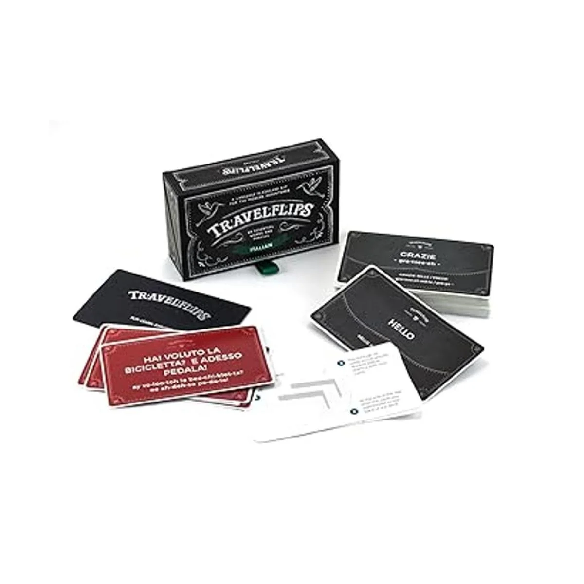 Travelflips Tarjetas flash italianas Aprende palabras y frases de vocabulario en idioma italiano Italiano básico para principiantes Regalo para viajeros, niños y adultos Tarjetas de inglés a italiano