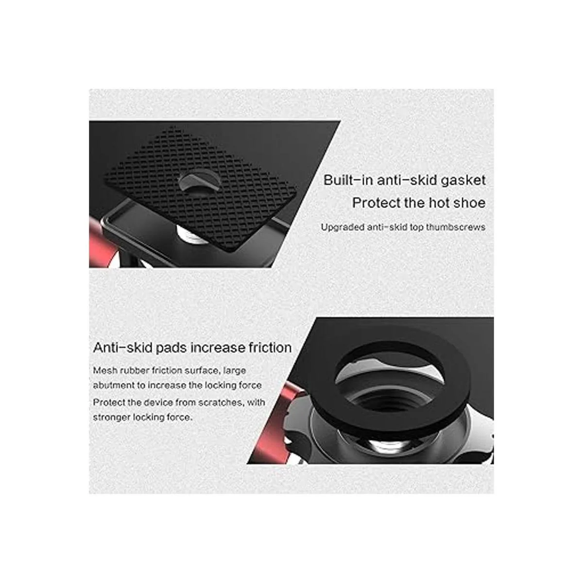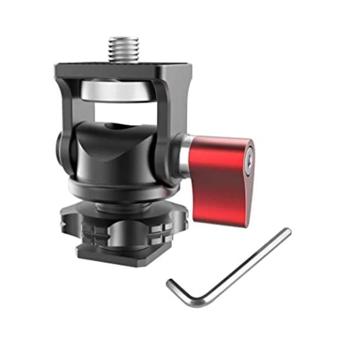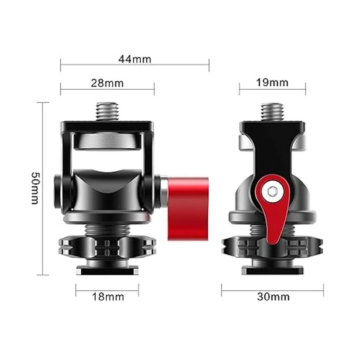 Zapata fría y tornillo de 1/4 pulgadas: diseñado con tornillo de 1/4 pulgadas y zapata fría en la parte superior e inferior de este soporte para monitor de cámara, compatible con trípode, monitor de campo, luz de video LED, micrófono y cualquier otro dispositivo con un agujero de tornillo de 1/4 pulgadas o adaptador de zapata fría