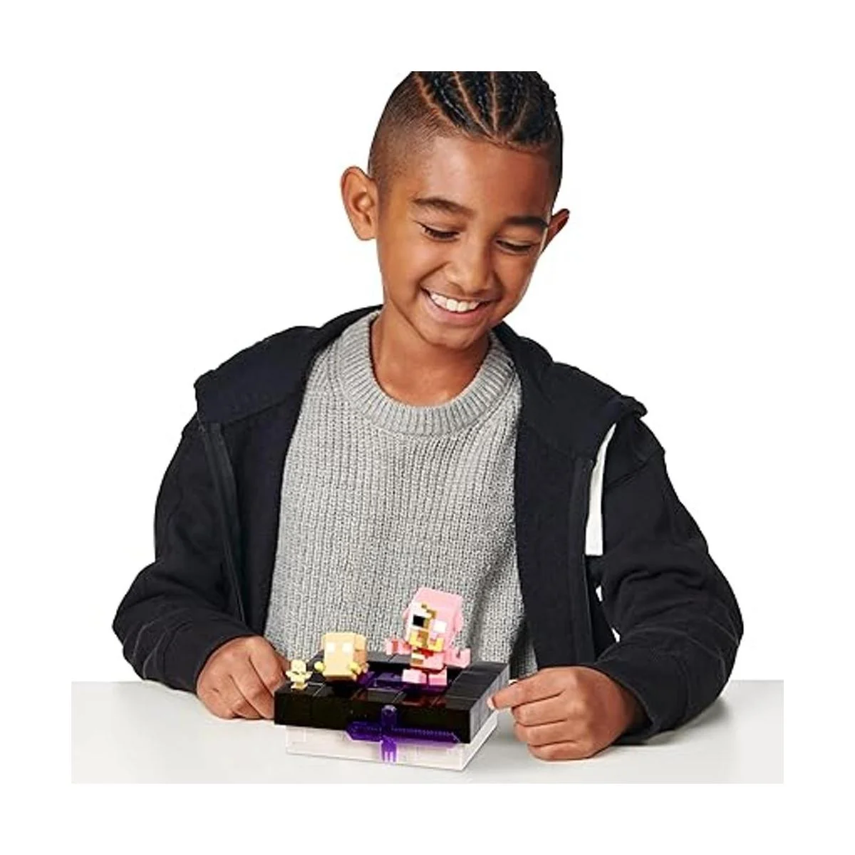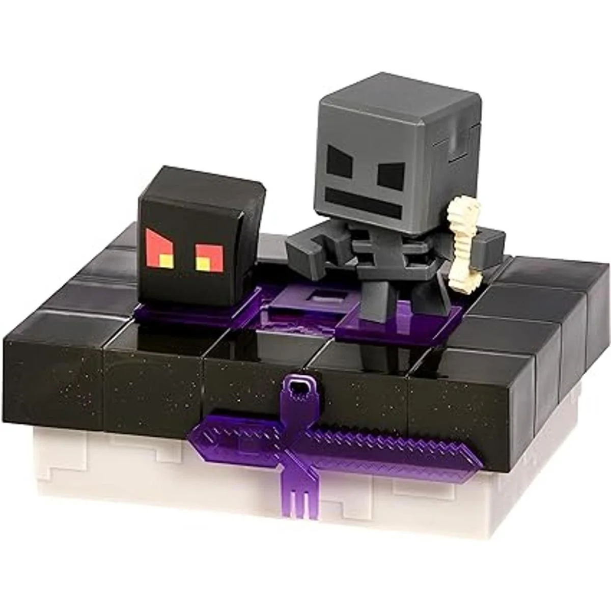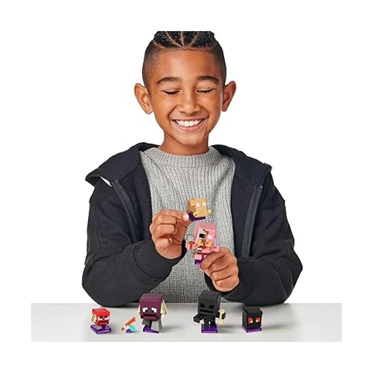 3 pares de personajes artesanales para encontrar Cerdito zombi con Baby Hoglin, escalofriante con deslizador de bebé y esqueleto marchito con cubo de magma. Colecciona las 3 mini Mobs.