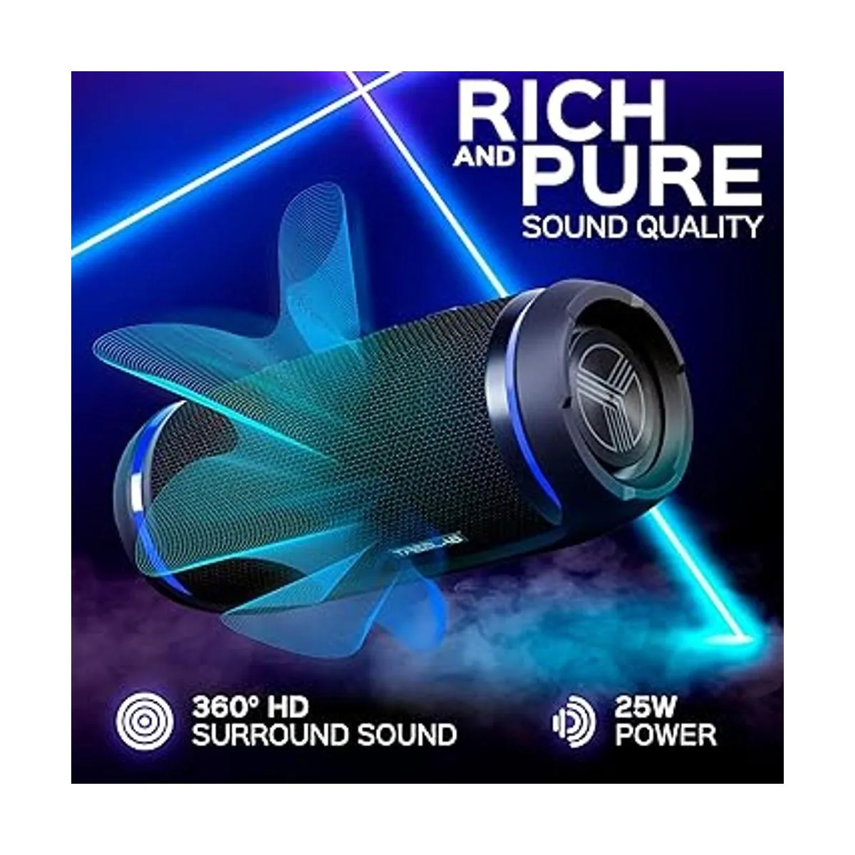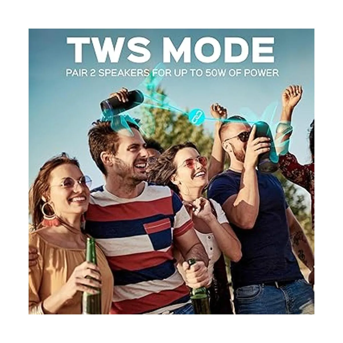 Extraordinario sonido HD de 360 opción para conectar dos altavoces: cada uno de nuestros altavoces portátiles TWS Bluetooth viene con 25 W de sonido HD nítido de 360 y subwoofers dobles DualBass, para una experiencia auditiva inigualable. Si eso no es suficiente, puedes conectar dos altavoces inalámbricos juntos para un verdadero sonido envolvente de alta definición que te volará.