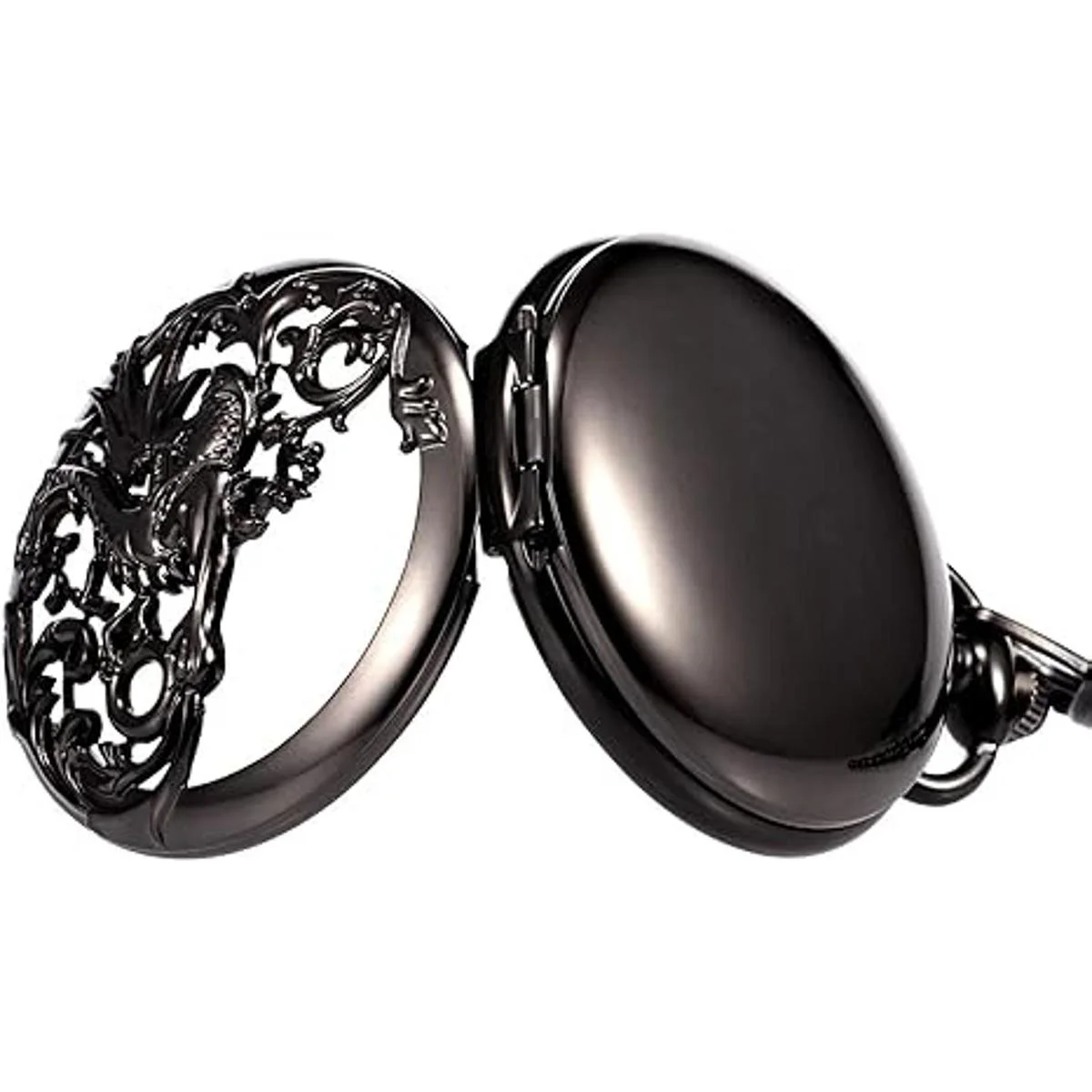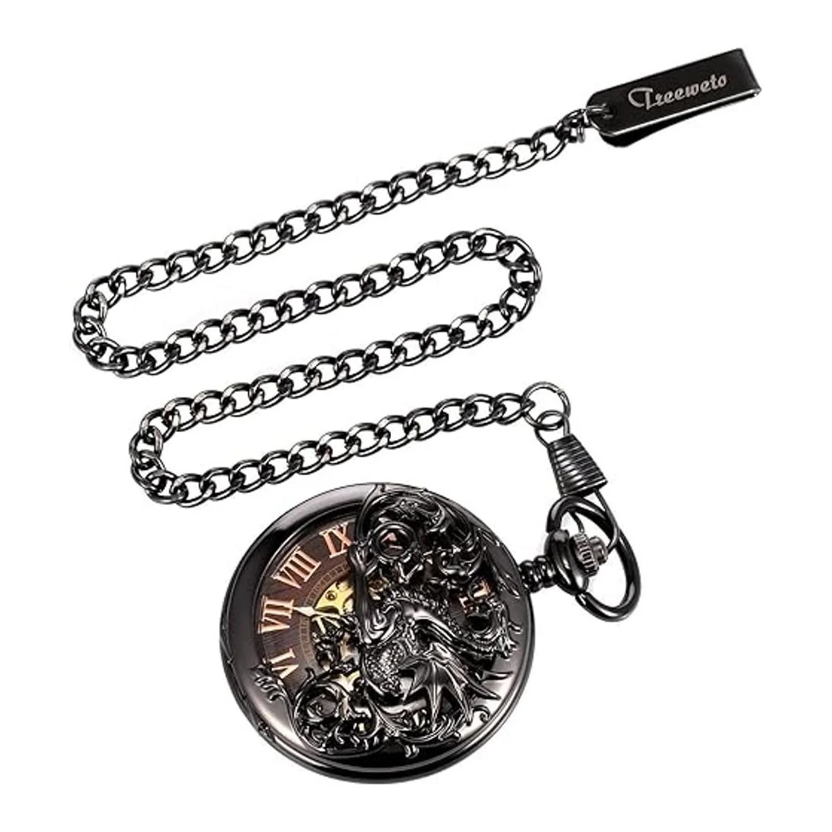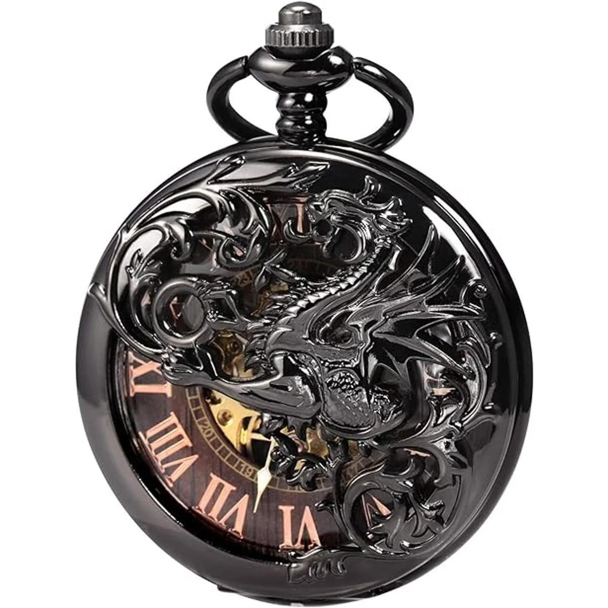 Treeweto Reloj de bolsillo mecánico de dragón antiguo con cadena