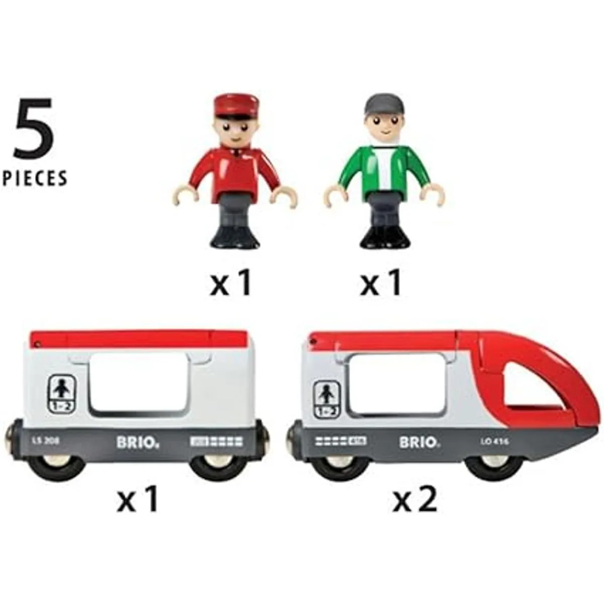 5 piezas; 3 Coche tren, poseable ingeniero Brio y poseable pasajeros Brio
