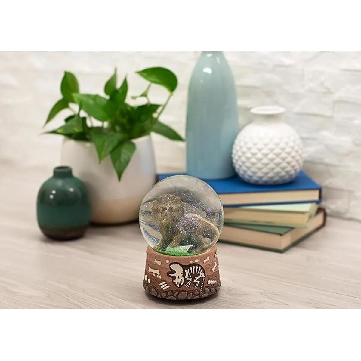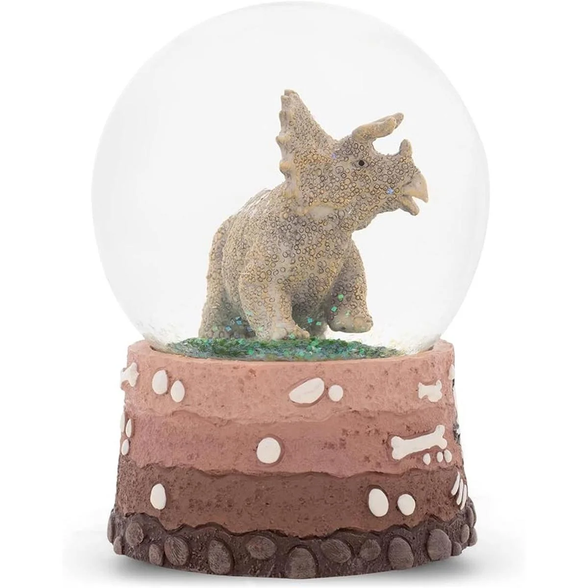 Triceratops Globo de nieve de dinosaurio con purpurina musical de 3.937 in, color marrón