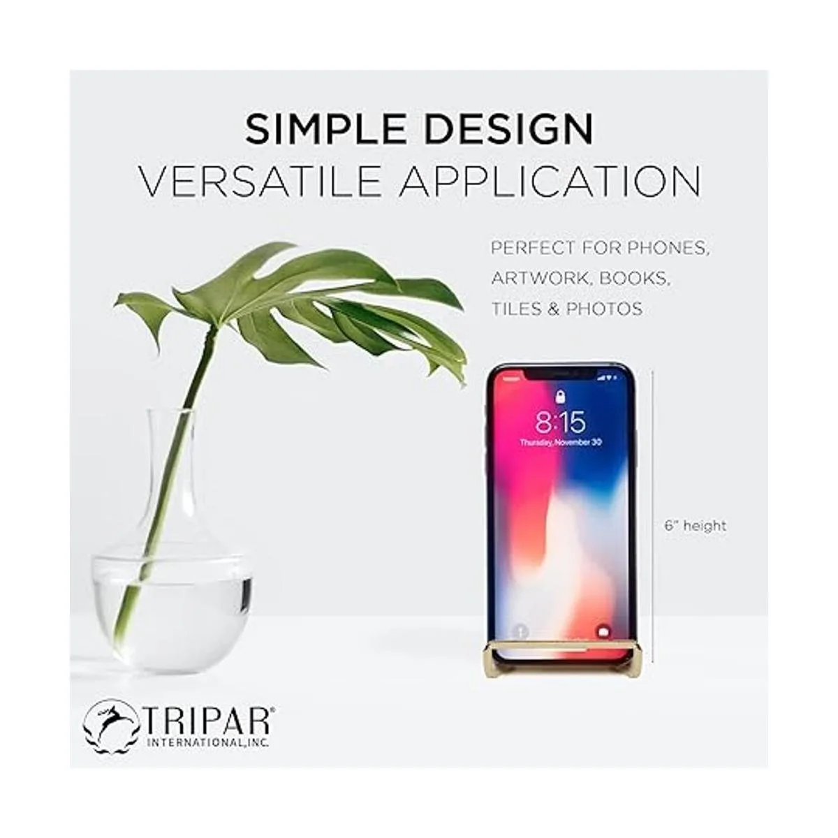 TRIPAR Soporte de placa de alambre cuadrado de metal chapado en latón de 4 pulgadas, soporte de plato, soporte de caballete para libro de cocina, soporte para marco de fotos