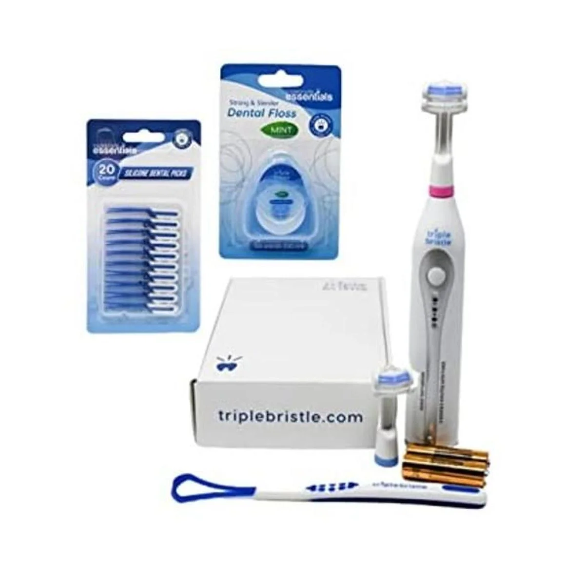 Triple Bristle GO | Cepillo de dientes Sonic portátil AA Batter para viajes | Tres modos potentes | cerdas de nailon suave, también para autistas y necesidades especiales adultos y niños | Triple Bristle Go + kit de cuidado bucal