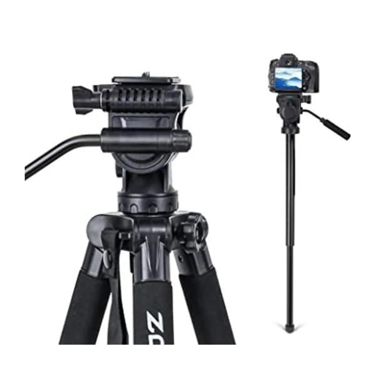 Trípode de cámara de aleación de aluminio 2 en 1, monopié de 71,2 pulgadas71.3 in con tornillos de 14 pulgadas con cabeza de arrastre fluido y bolsa de transporte para cámaras réflex digitales Nikon Canon, videocámaras de vídeo Carga hasta 26,5 libras