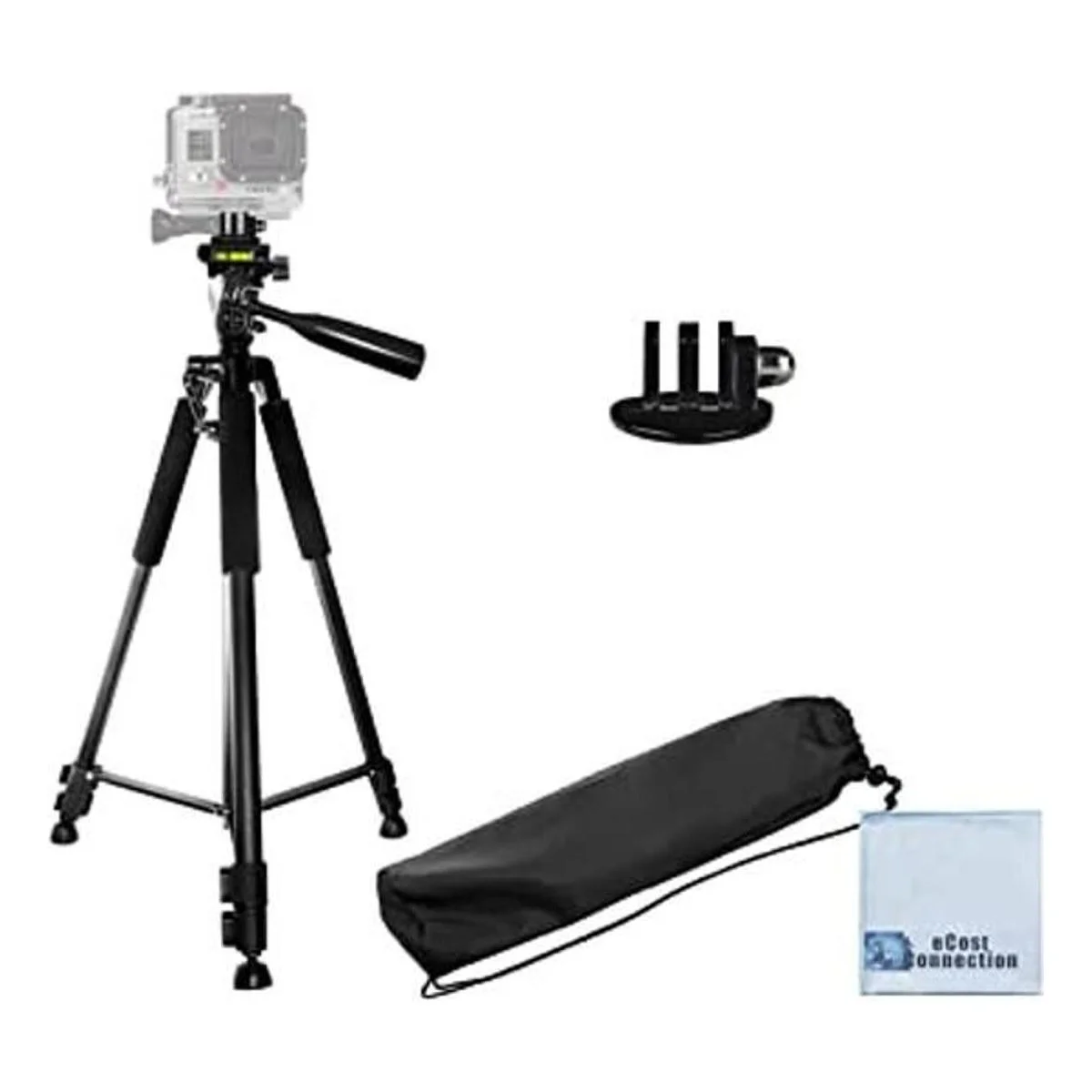 Trípode de cámara profesional de 60 pulgadas para todos los GoPro HERO1, HERO2, HERO33, HERO4, HERO4 Session, HERO5, Hero 6, Fusion Cameras y paño de microfibra eCostConnection