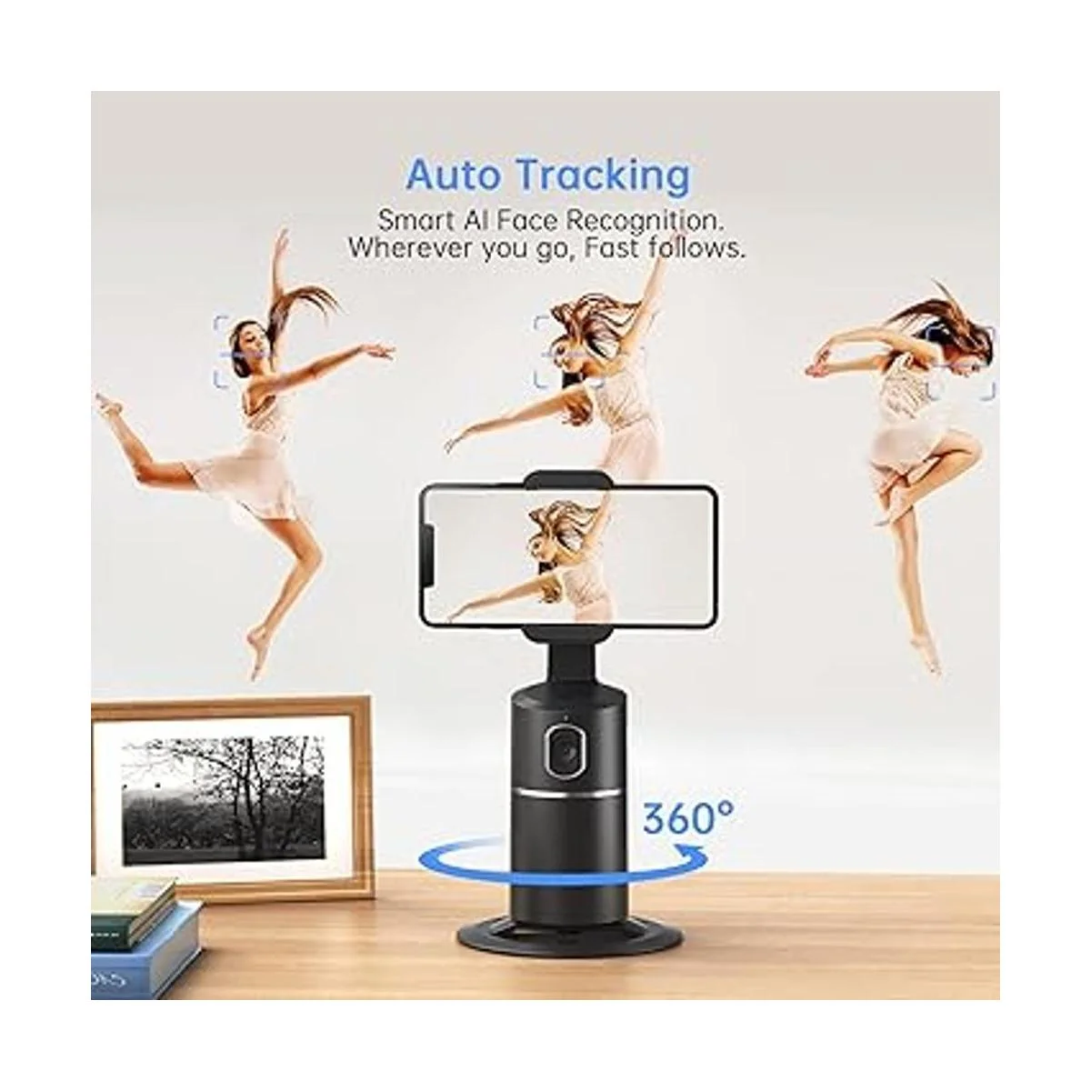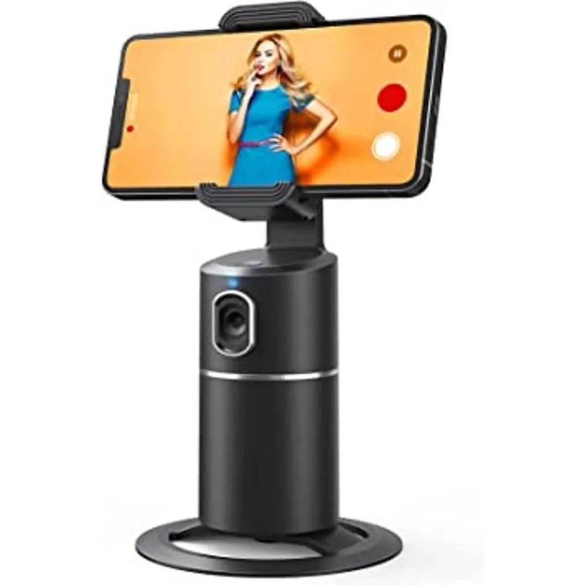 Seguimiento facial y disparo inteligente: este soporte para teléfono de seguimiento facial adopta un sistema informático de IA que puede reconocer y rastrear automáticamente tu cara o cuerpo, gira 360 de forma constante con tu movimiento. Libera tus manos para videollamadas y transmisión en vivo.