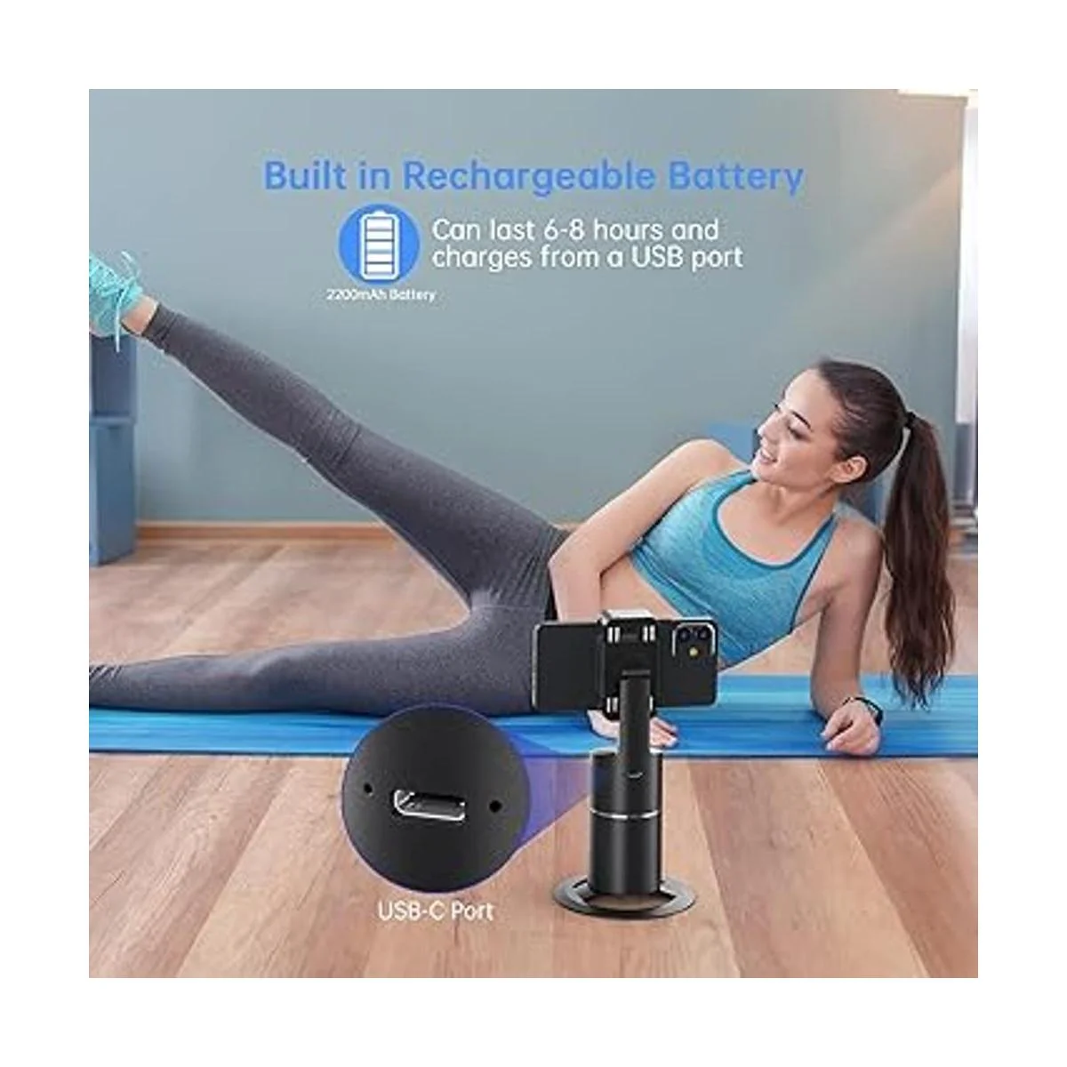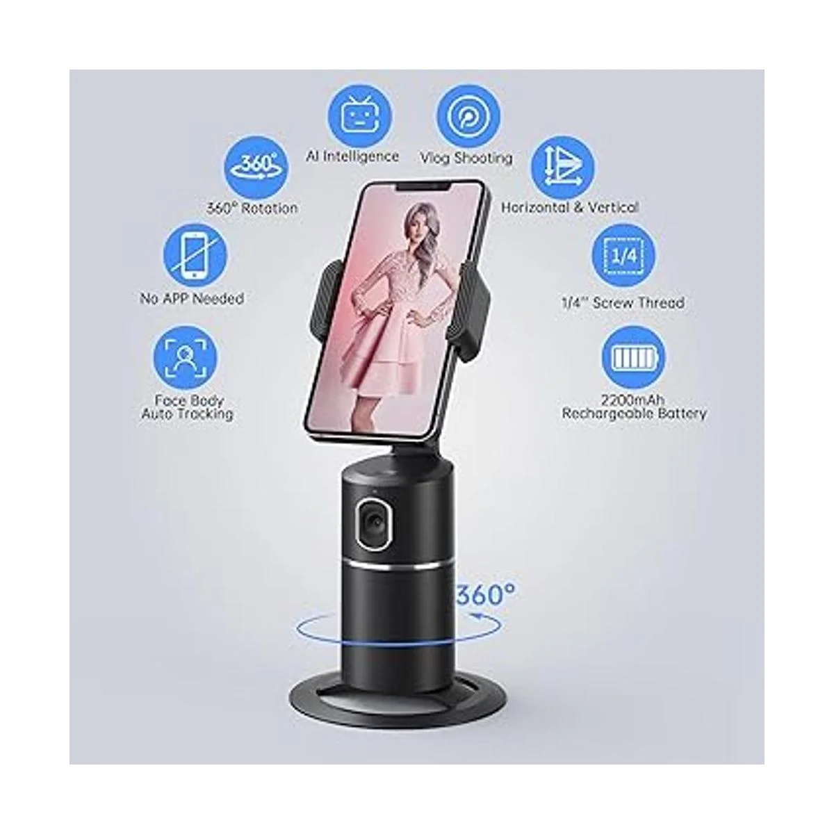 Trípode de seguimiento facial automático, no requiere aplicación, rotación de 360, soporte de cámara de teléfono, soporte inteligente de seguimiento de teléfono para transmisión de videos en vivo, batería recargable, color negro