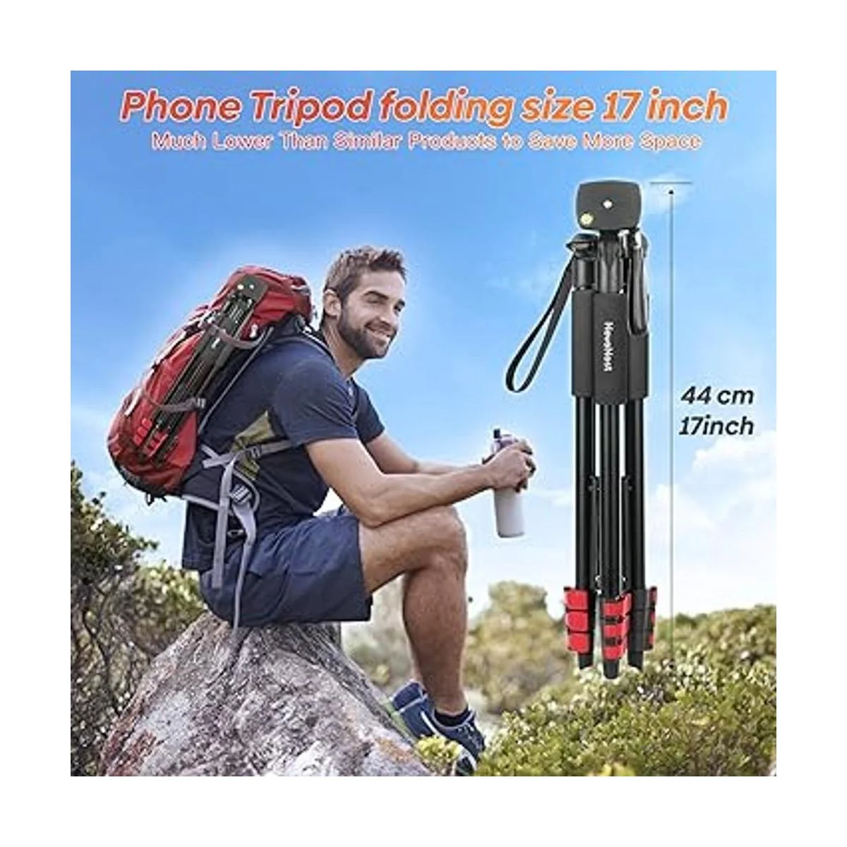 Trípode extensible: peso del trípode solo 20.25 oz, patas de bloqueo de palanca de liberación rápida, la altura varía de 18.3 a 64 pulgadas en poco tiempo para diferentes aplicaciones de altura. Trípode plegable para teléfono de 17 pulgadas, por lo que es fácil de transportar y almacenar. Peso del trípode de solo 20.25 oz, transporte de viaje extremadamente ligero
