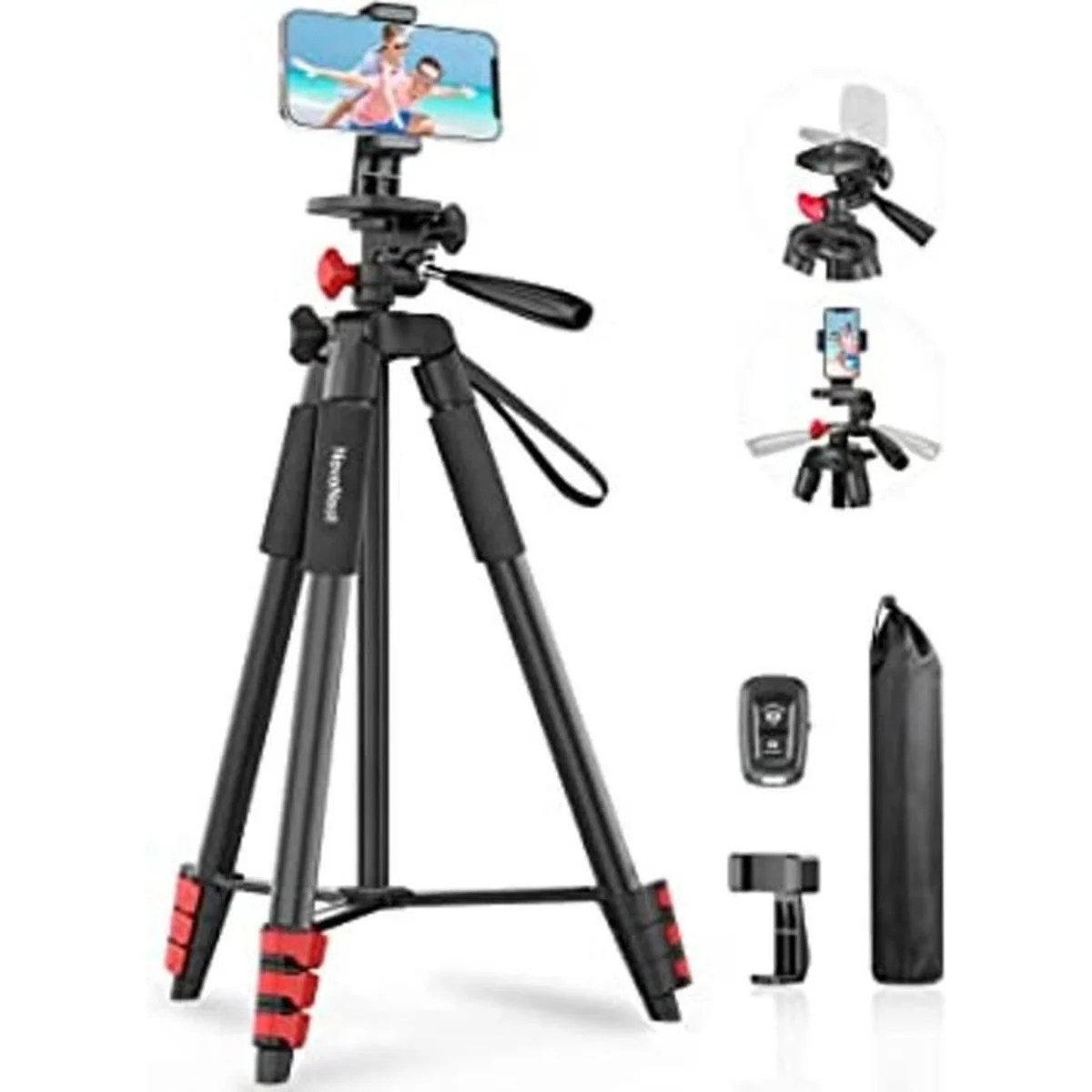 Trípode de teléfono de 65 pulgadas, trípode para iPhone con obturador remoto y soporte para teléfono para transmisión en vivo y grabación de video, compatible con iOSAndroidCámara bolsa de transporte incluida
