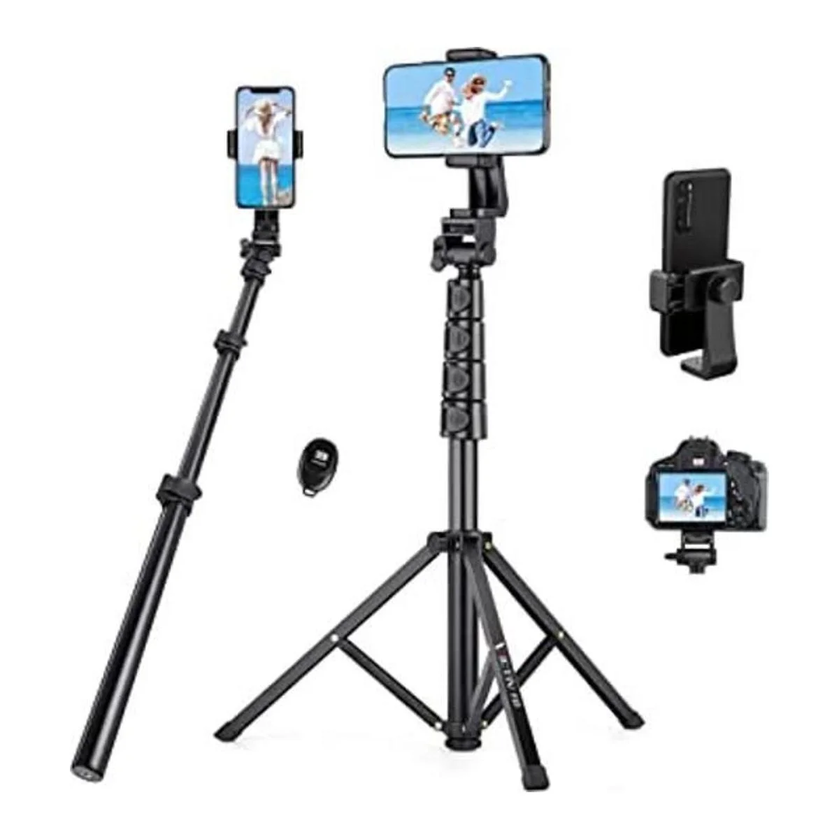 Trípode de teléfono de 70 pulgadas, trípode extensible para selfie con control remoto, soporte de trípode portátil para teléfono celular, trípode de viaje ligero, compatible con iPhoneSamsungAndroidCámara