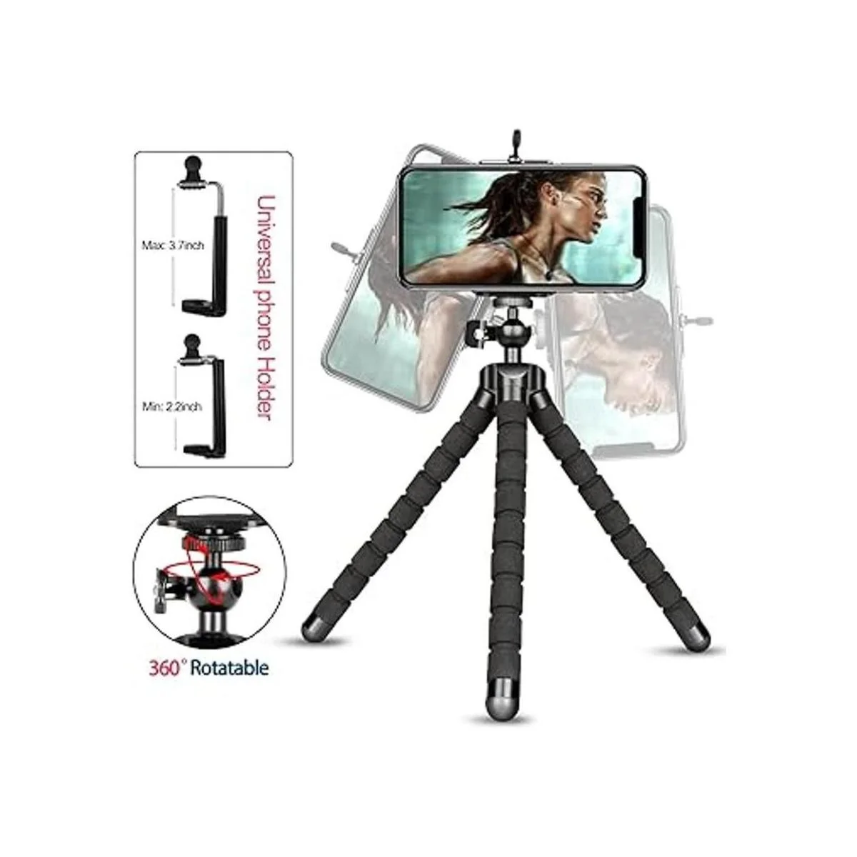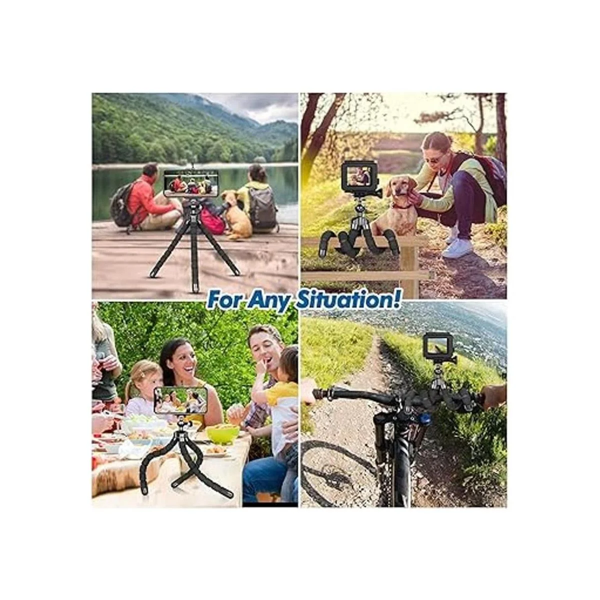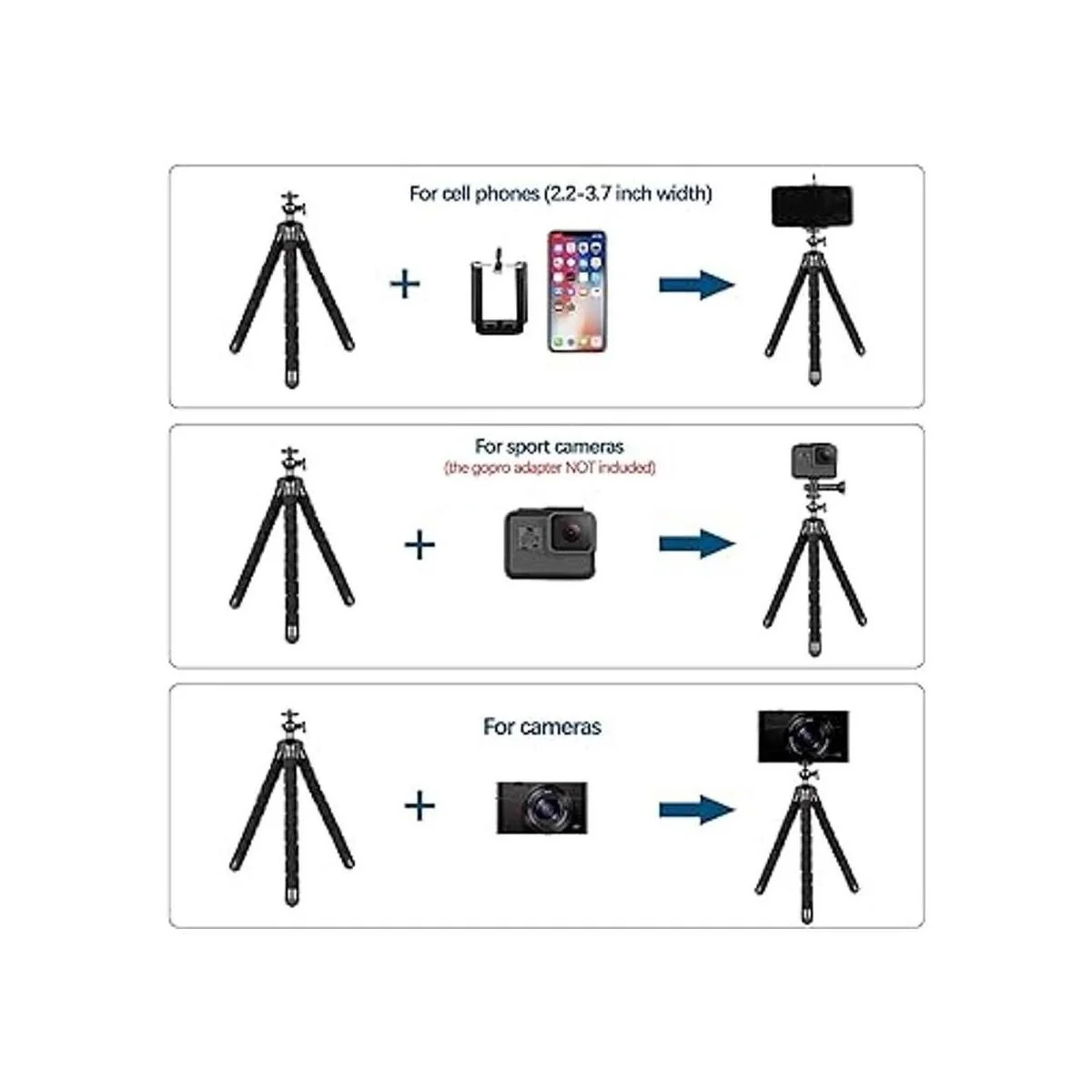 Patas de trípode duraderas y flexibles: patas ajustables estilo octopo hechas de metal más grueso y conector de metal completo y reforzadas con revestimiento de goma y espuma compacta, pueden ayudar a capturar disparos limpios desde cualquier ángulo, incluso en movimiento.
