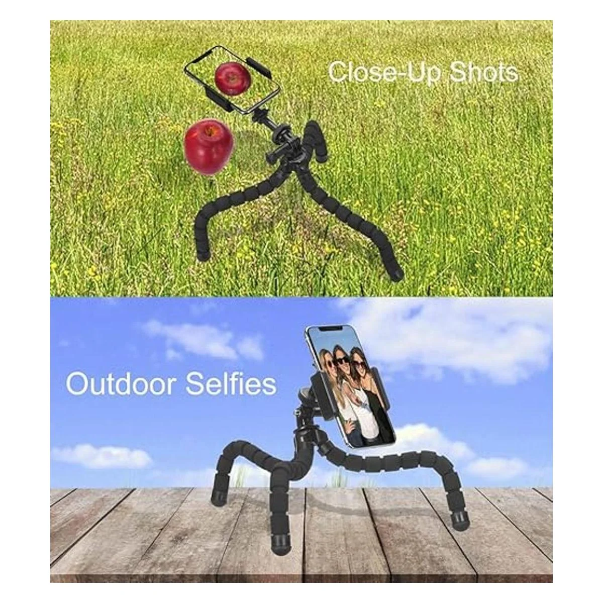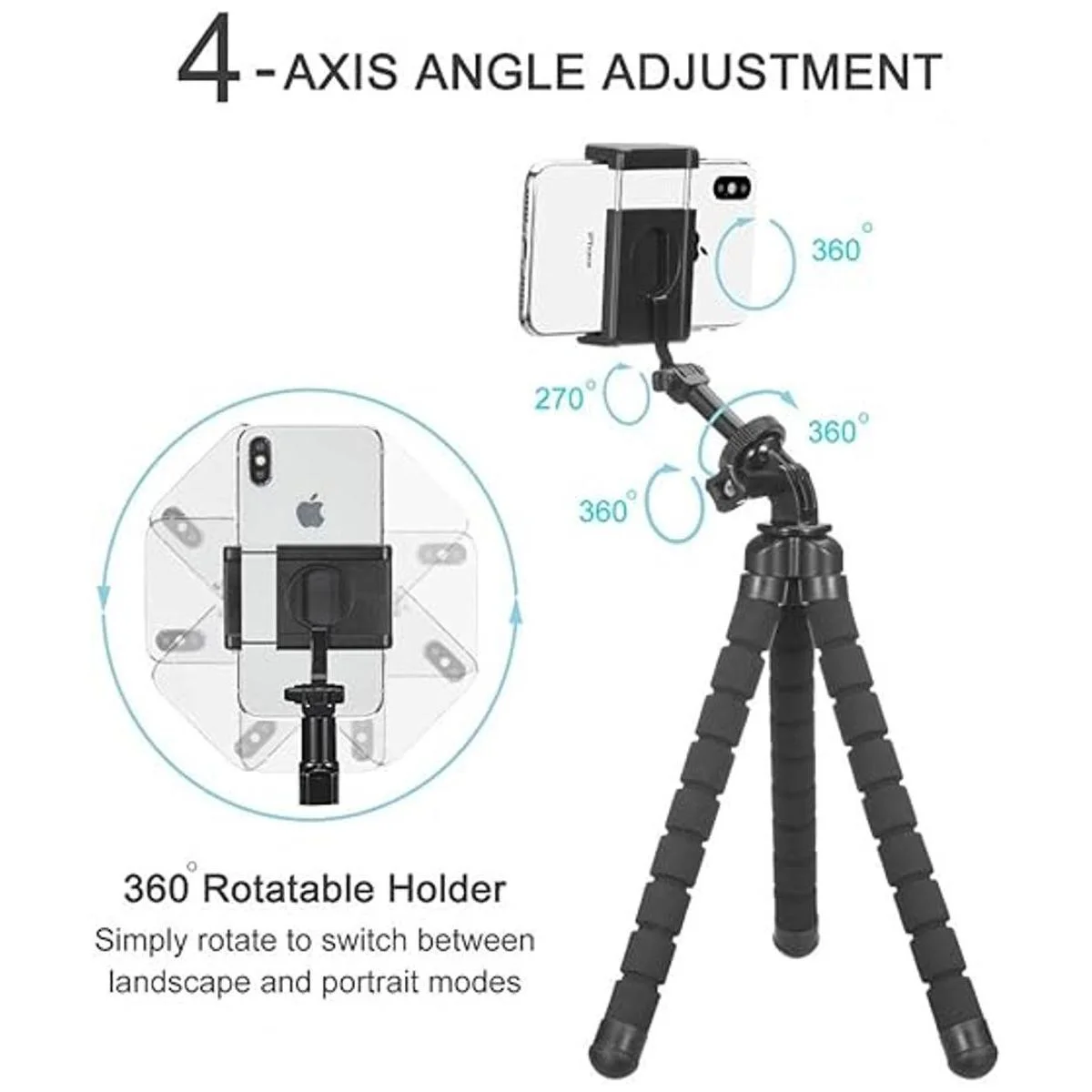 Ajuste de ángulo único de 4 ejes: permite un sinfín de posibilidades al colocar tu teléfono para crear todo tipo de ángulos de cámara. Simplemente girando el soporte giratorio de 360, puedes cambiar fácilmente entre modos de foto vertical y horizontal. Las patas de estilo pulpo mejoradas se pueden fijar en cualquier lugar, lo que te permite encontrar tus ángulos de disparo perfectos cada vez.