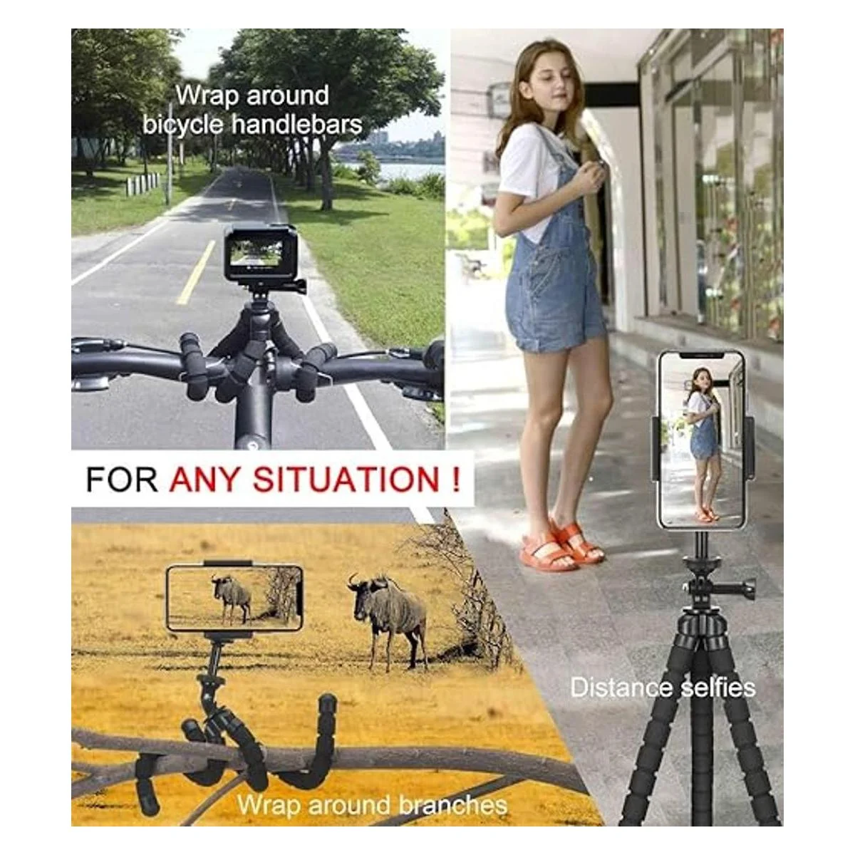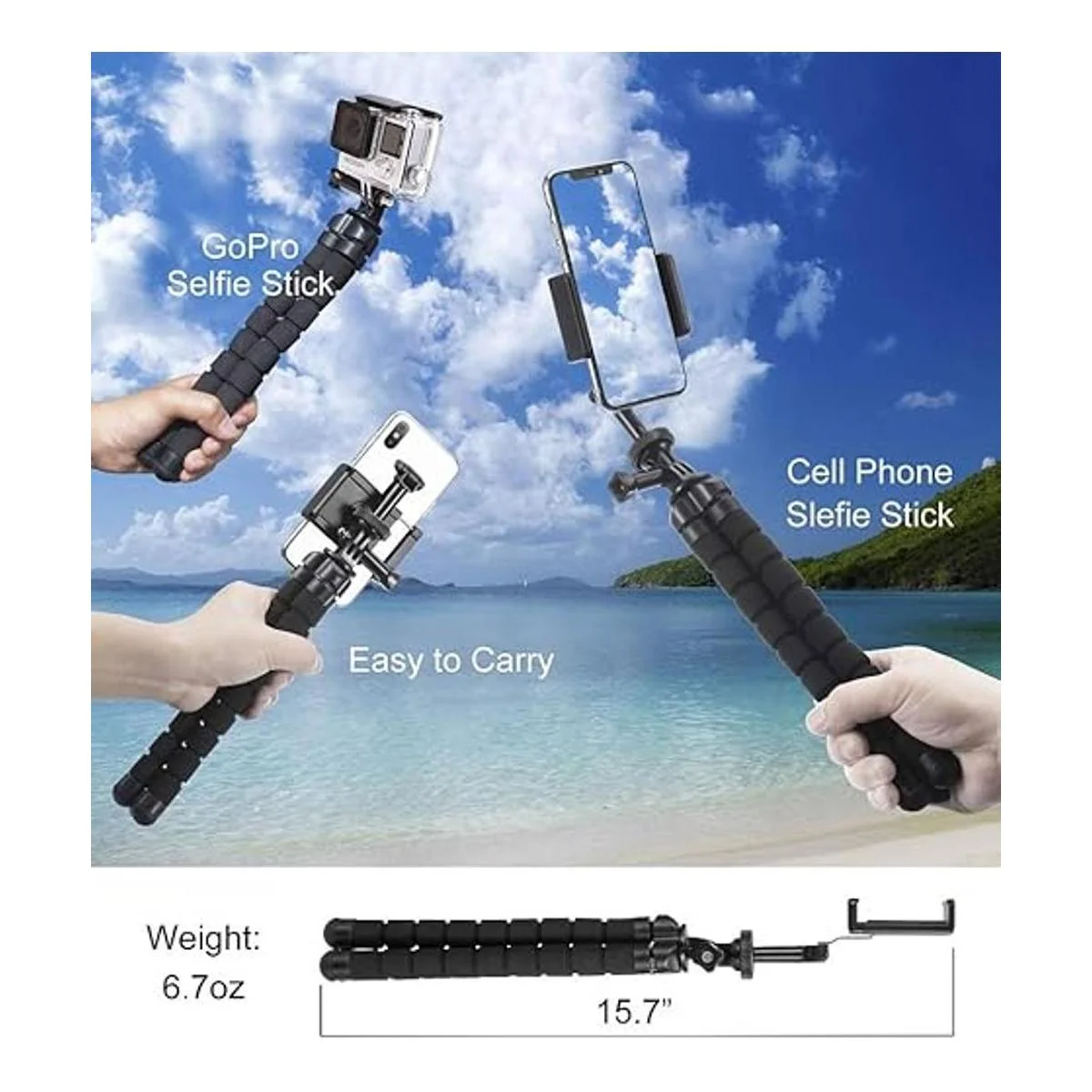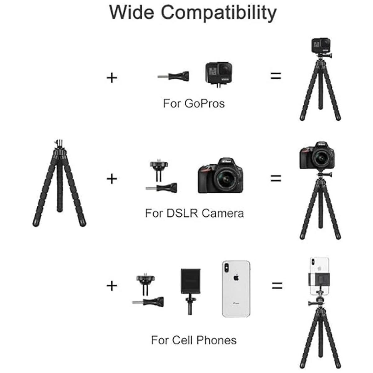 Material mejorado/estructura resistente: las patas flexibles de estilo pulpo están hechas de aluminio grueso premium y un conector de metal completo con un tubo de plástico duro y espuma de alta densidad, por lo que el trípode es mucho más resistente, duradero y estable que la generación anterior de variedades de plástico.