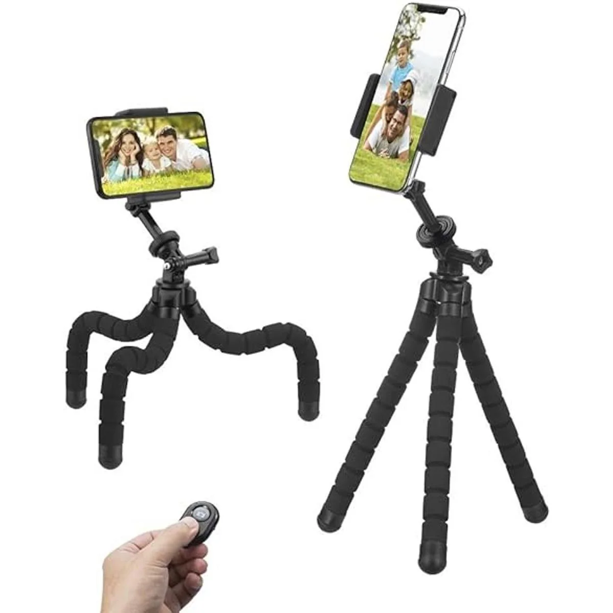Trípode para teléfono, trípode flexible, ajuste de ángulo de 4 ejes, soporte giratorio de 360 único, patas de estilo pulpo resistente, y obturador remoto inalámbrico para iPhone, teléfono Android, cámara DSLR y GoPro.