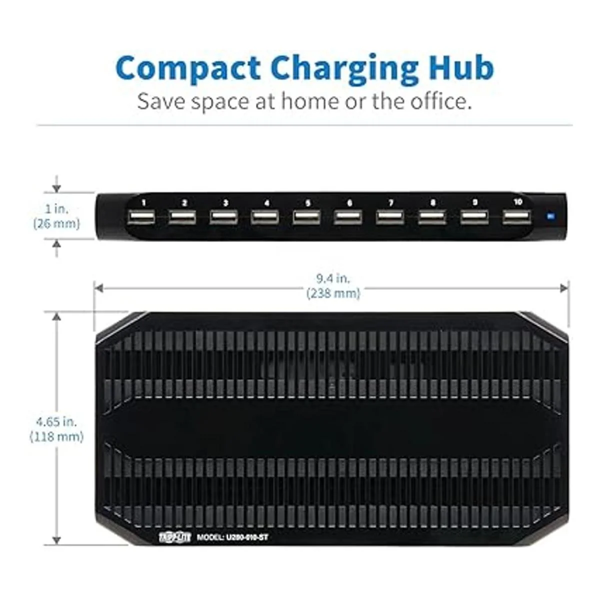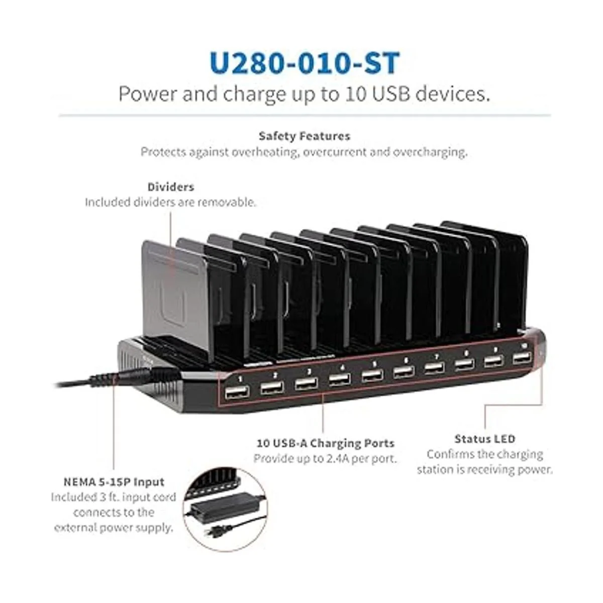 TRIPP LITE 10 puertos USB estación de carga Dock con ranuras de almacenamiento para Tablet iPhone, iPad y portátiles U280010ST, negro