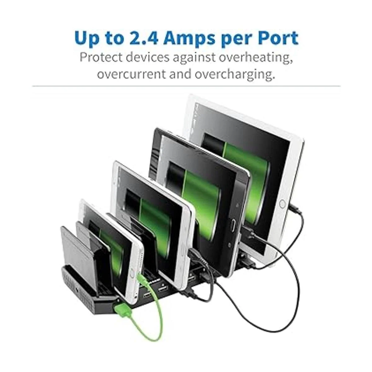 Hasta 5 V, 2,4 A por puerto para cargar dispositivos con batería intensiva