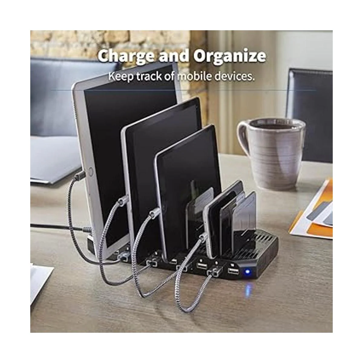 Incluye 12 soportes de almacenamiento ajustables para organizar dispositivos