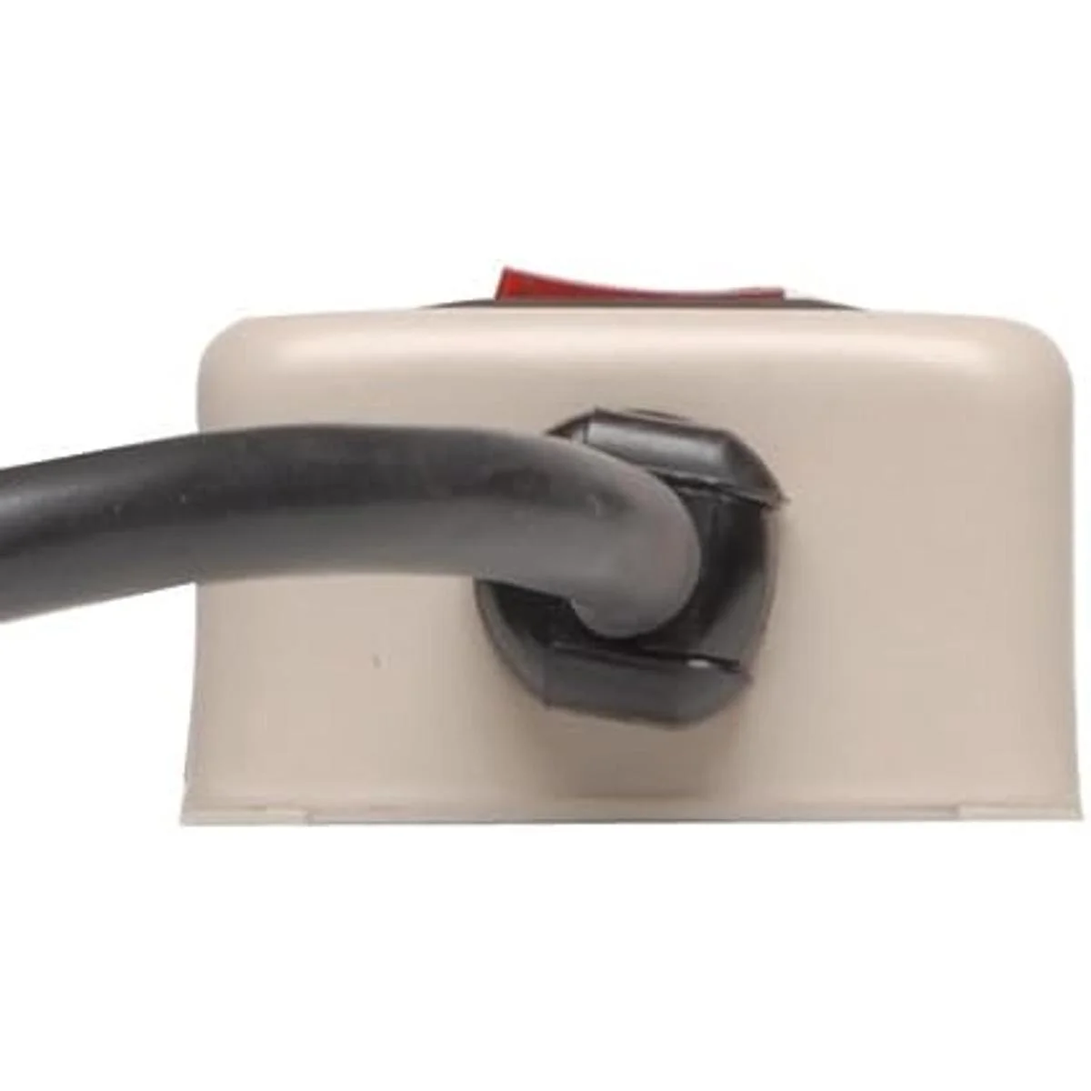 Protector de sobretensiones de metal de seis salidas con cable negro de seis pies: este supresor de sobretensiones proporciona seis salidas NEMA 515R. El cable de alimentación de CA de 6 pies actúa como un cable de extensión para darte la flexibilidad para llegar a tomas lejanas.