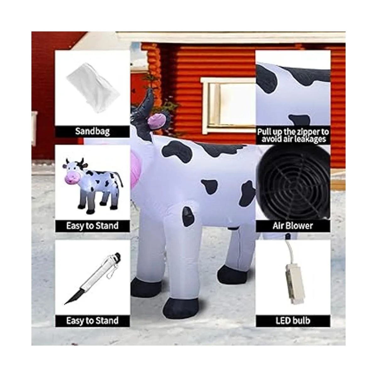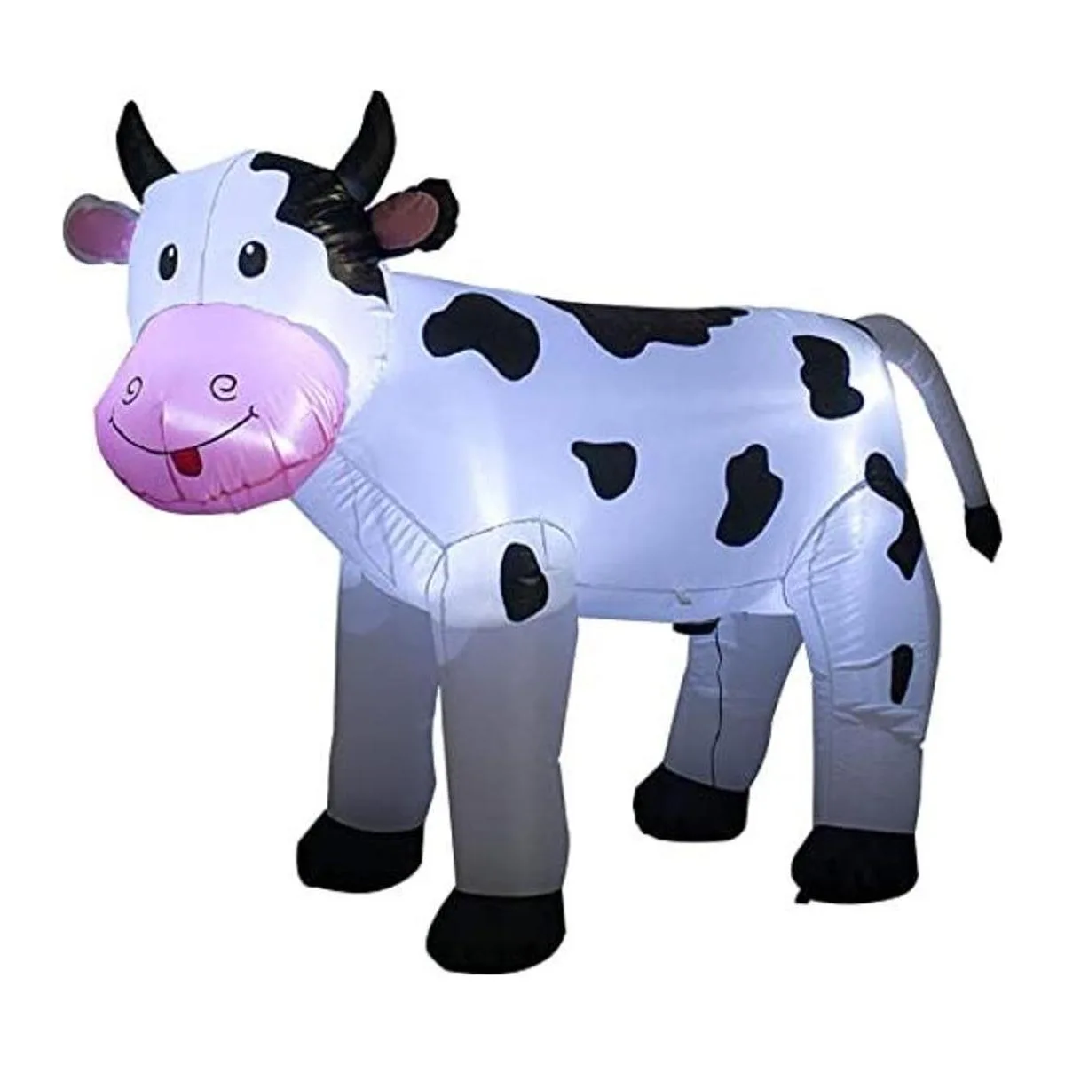 Esta vaca inflable de 5.9 ft dibuja sonrisas y risas. Es una decoración alegre para la parte delantera o el patio. Esta decoración inflable es una vaca sonriente con manchas. Es ideal para usar durante la temporada de vacaciones.