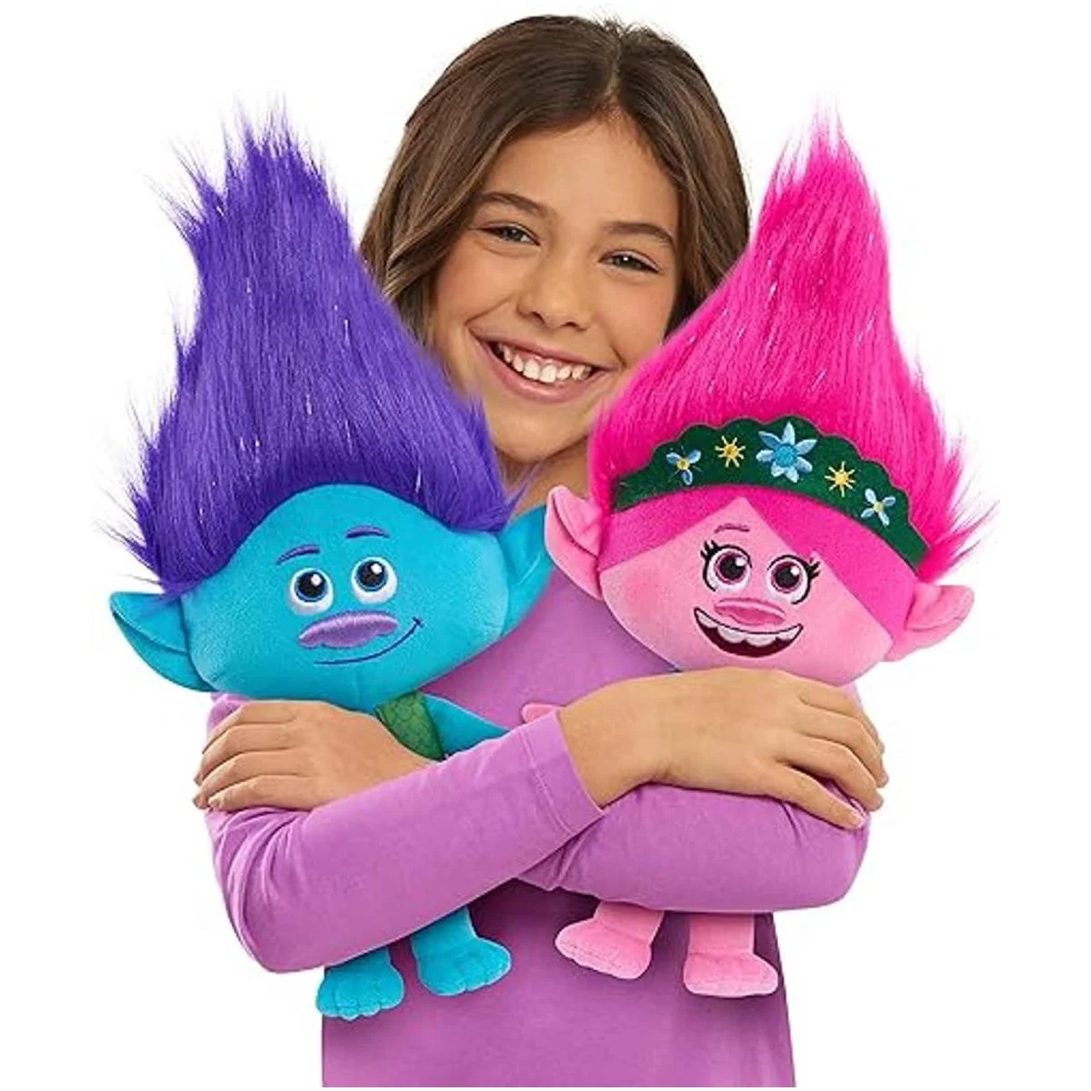 Es hora de abrazos Los niños pueden traer a casa amapola y rama con el paquete de 2 Trolls Large Plush Friendship, inspirado en DreamWorks Trolls World Tour Poppy and Branch se agarran de la mano. Estos suaves y tiernos personajes de felpa de 13 pulgadas de alto son perfectos para abrazar tiempo en cualquier momento.