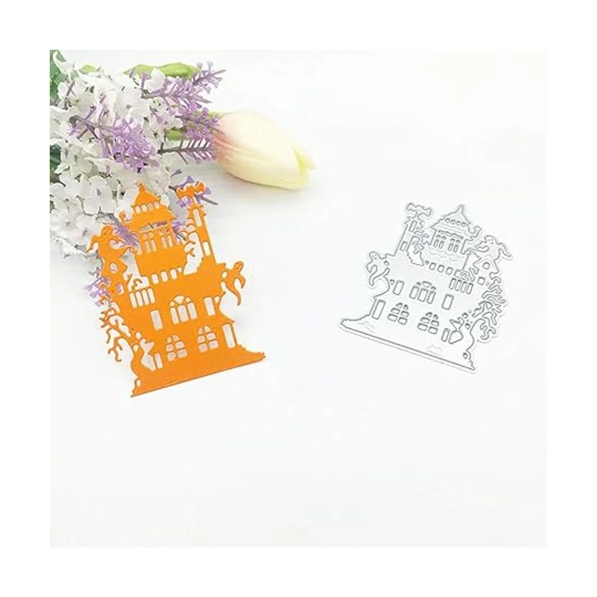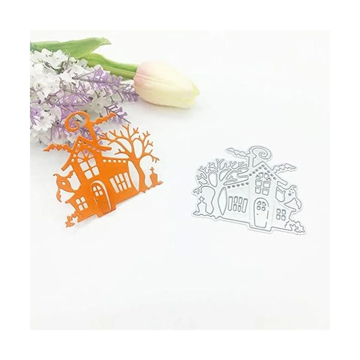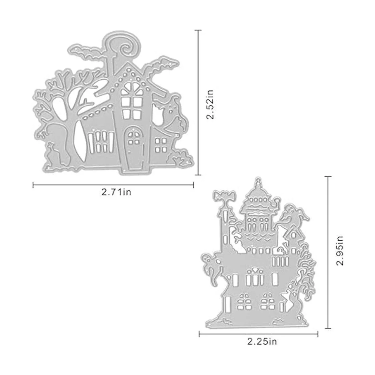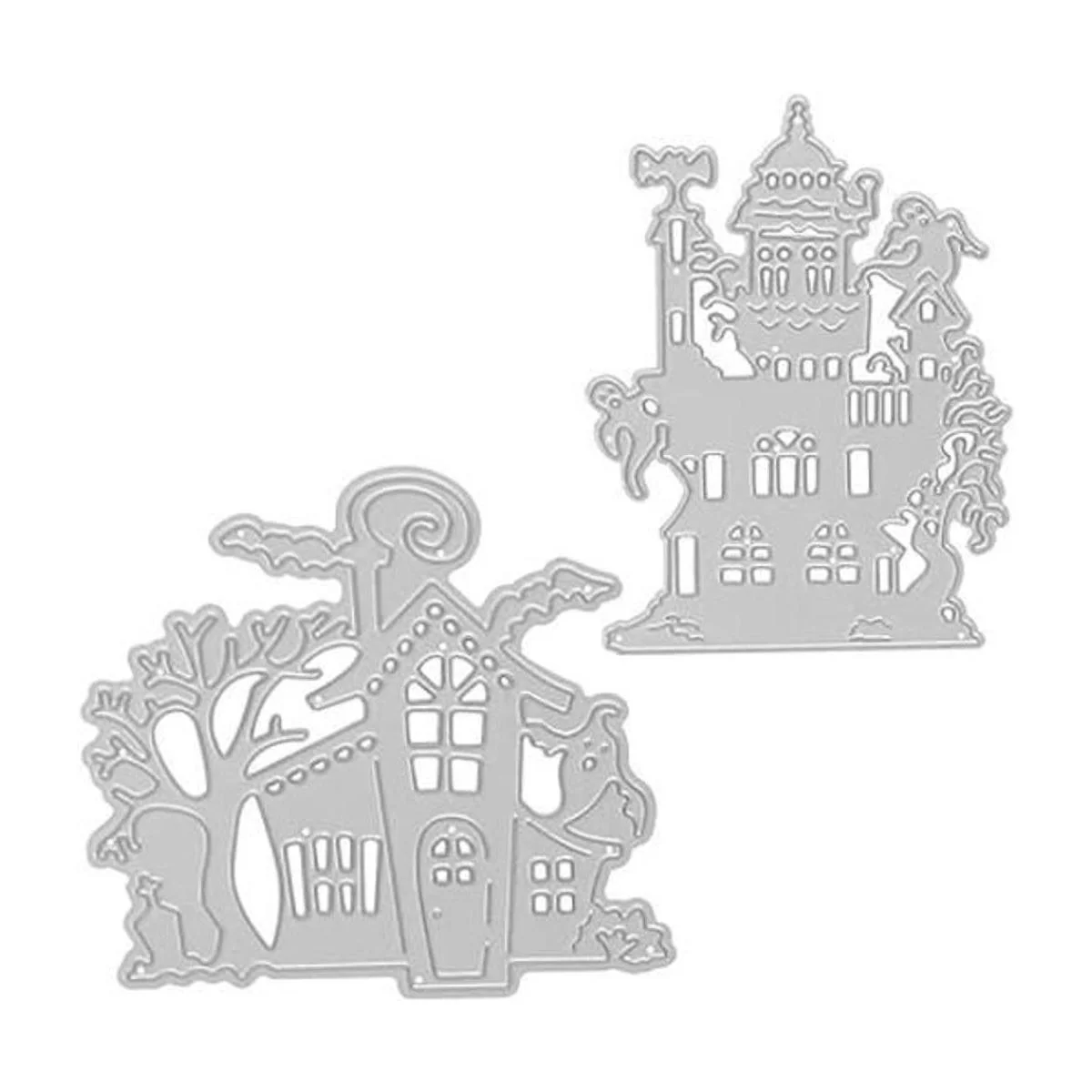 Troqueles de corte de castillos de Halloween, plantillas de metal, troqueles para hacer tarjetas, álbum de recortes, decoración de bricolaje, troqueles para manualidades 2 casas de Halloween