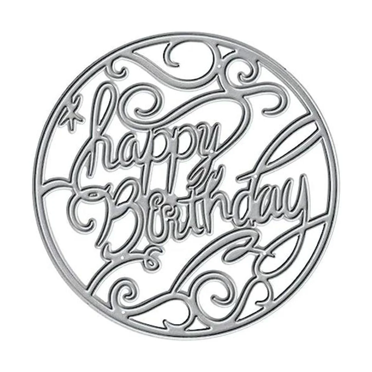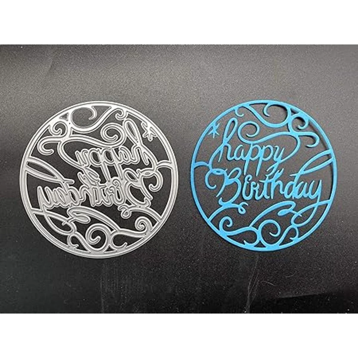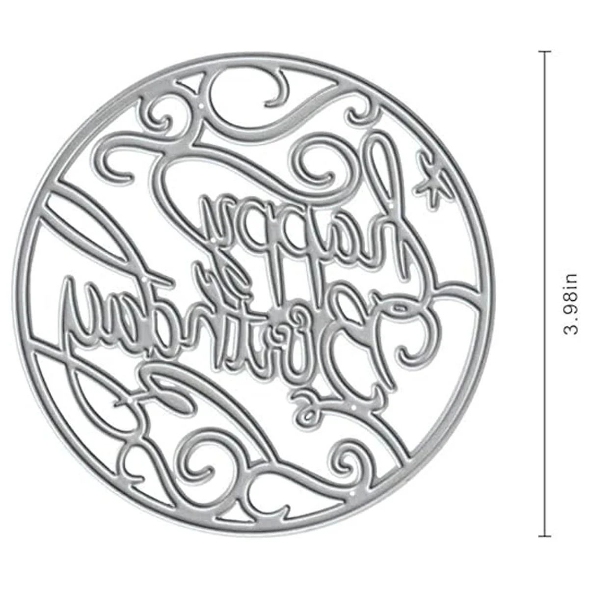 Troqueles de corte de marco de feliz cumpleaños, troqueles de encaje circulares para hacer tarjetas, herramienta de grabación en relieve, álbumes de recortes, troqueles de manualidades grabados