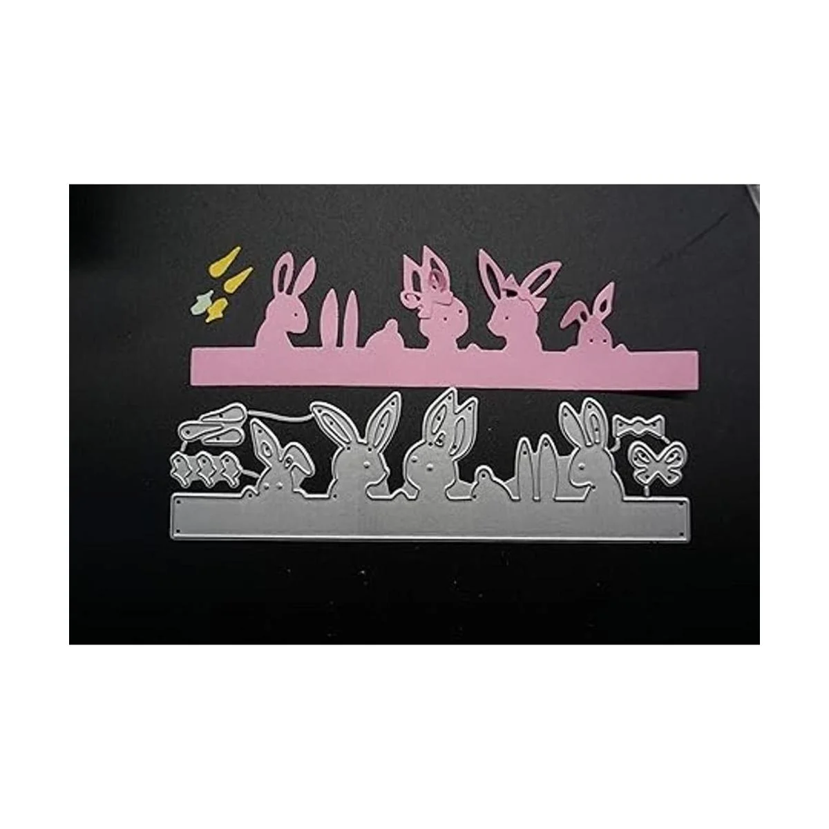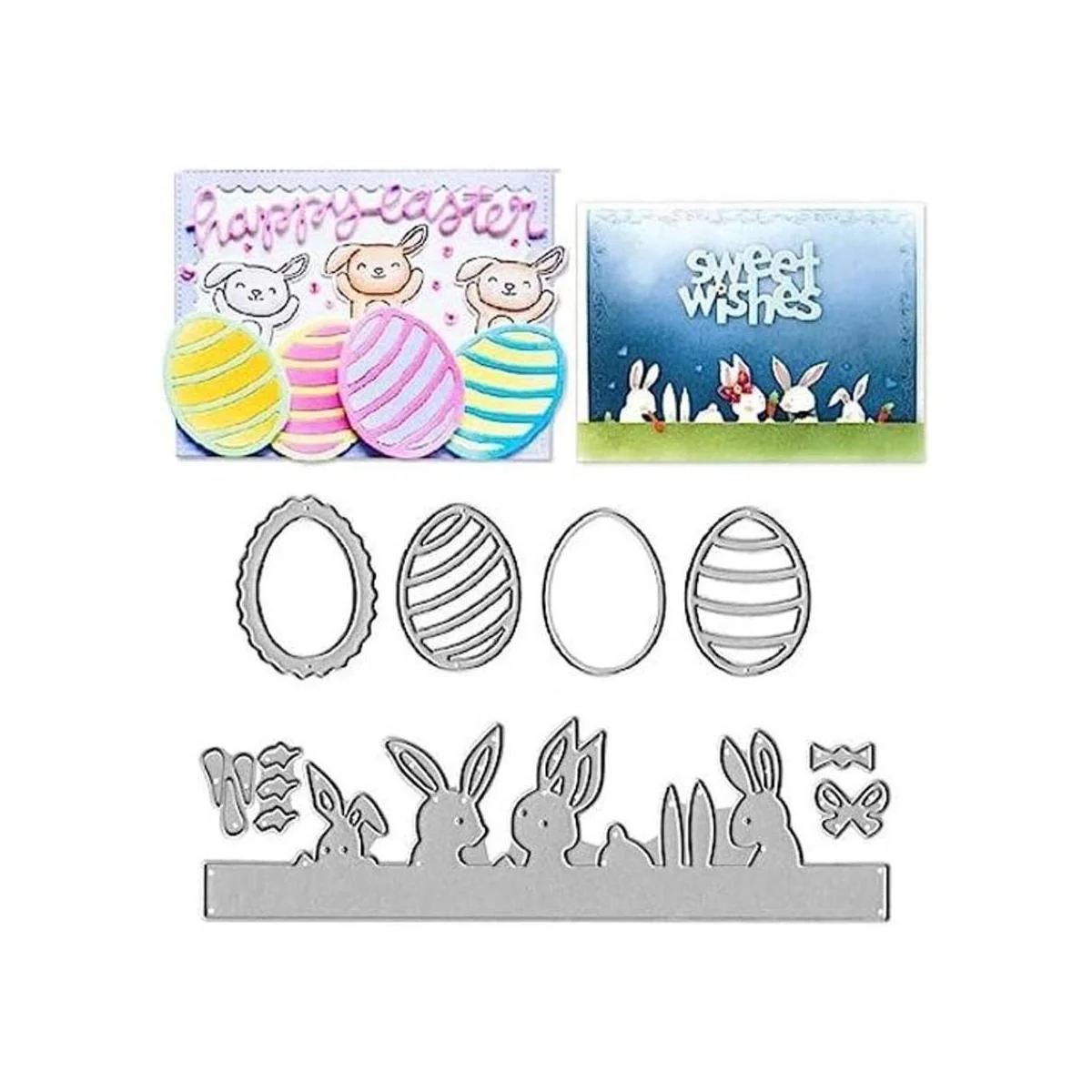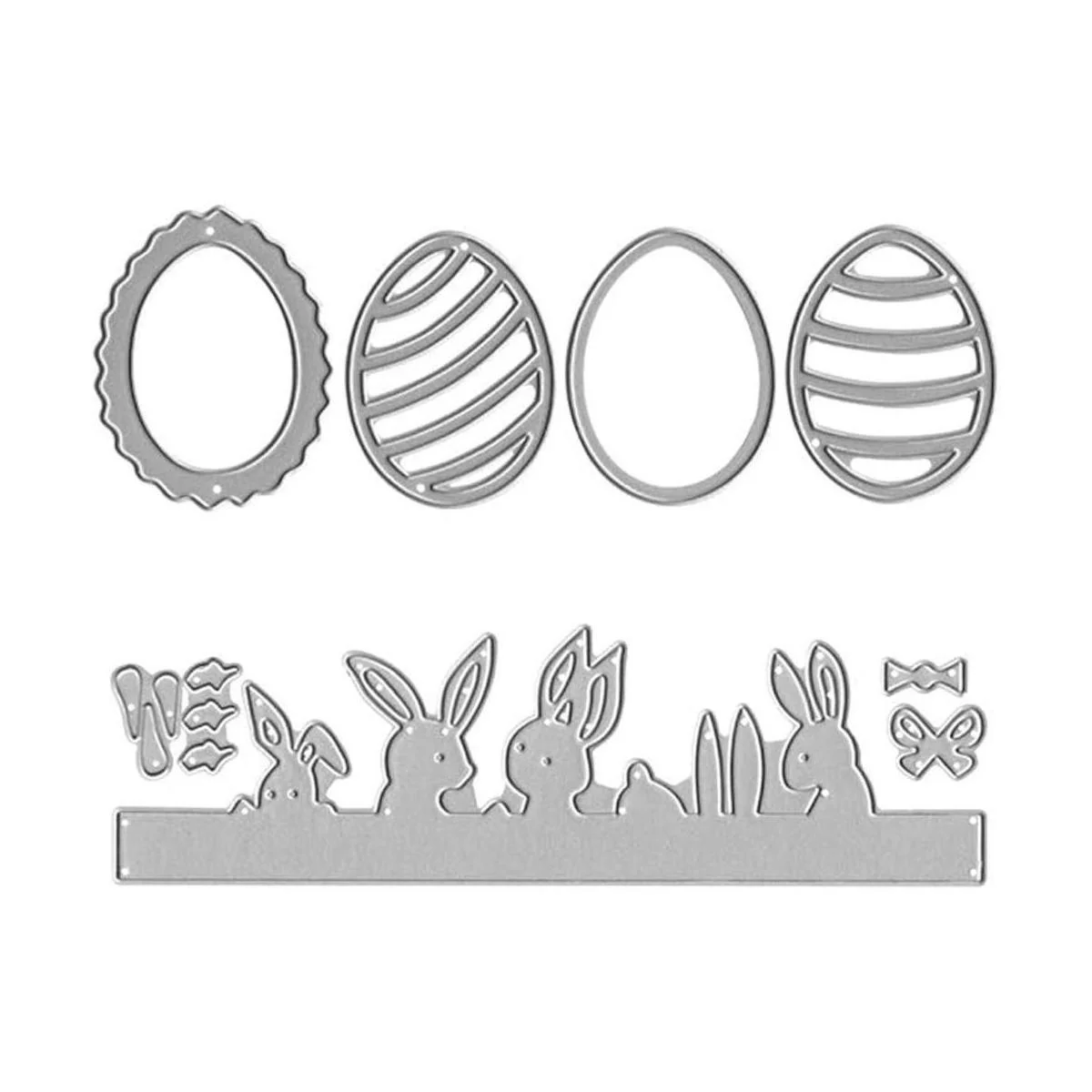 Troqueles de corte de metal 4 huevos caza conejito borde plantilla de relieve herramienta de Pascua troquelado para hacer tarjetas, álbumes de recortes DIY grabado manualidades