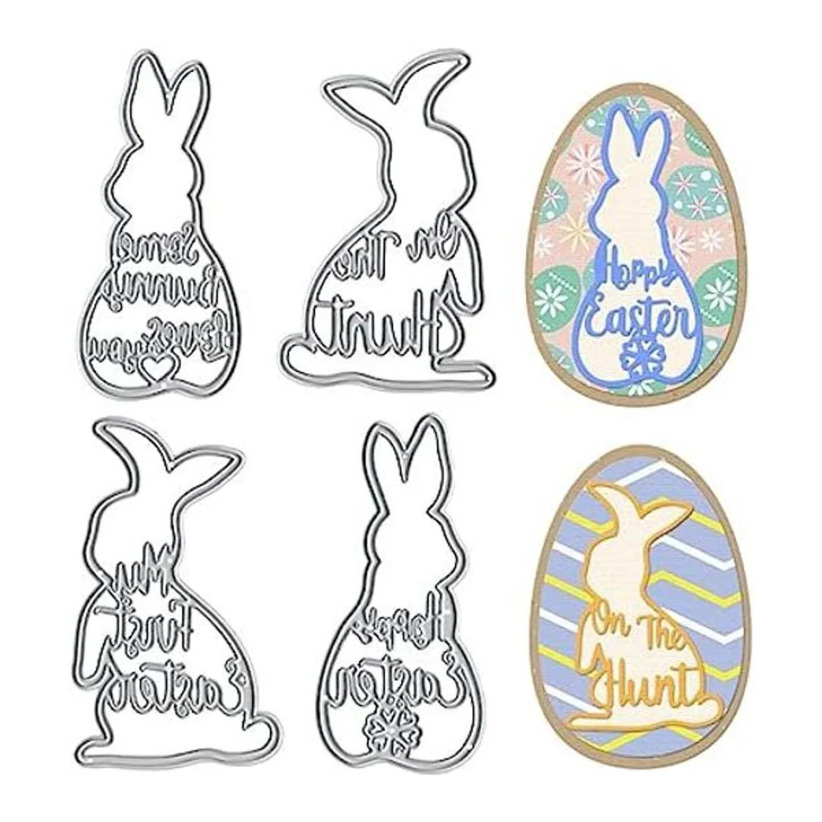 Troqueles de corte de metal de conejo de Pascua, diseño de conejo de Pascua, para hacer tarjetas, plantillas, manualidades, álbumes de recortes, álbumes de recortes, decoración de tarjetas de papel