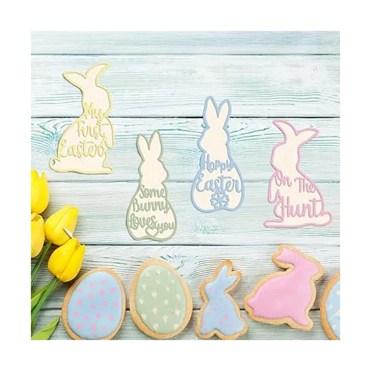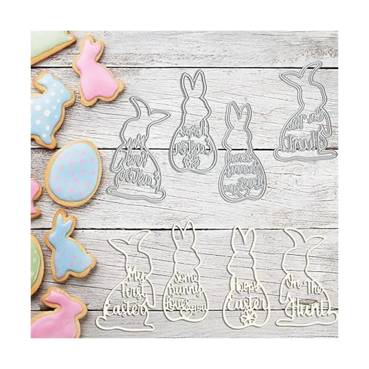 2. Material: este troquel de corte de conejo de Pascua está hecho de acero al carbono, reutilizable y lavable para un uso a largo plazo para ahorrar dinero.