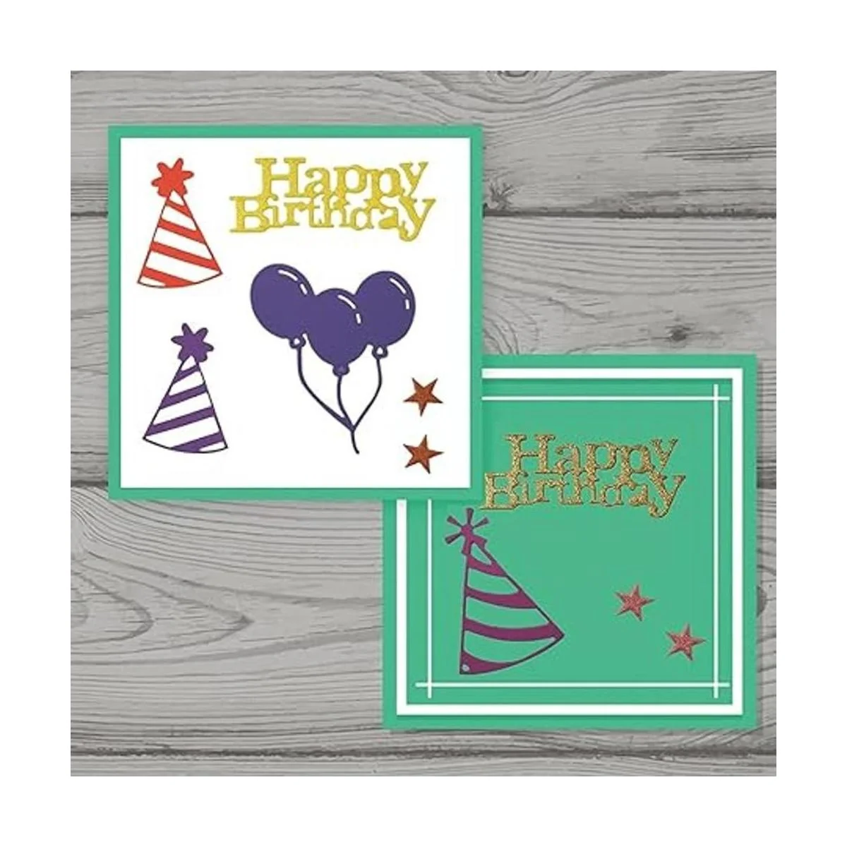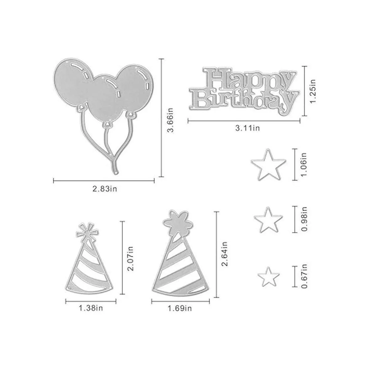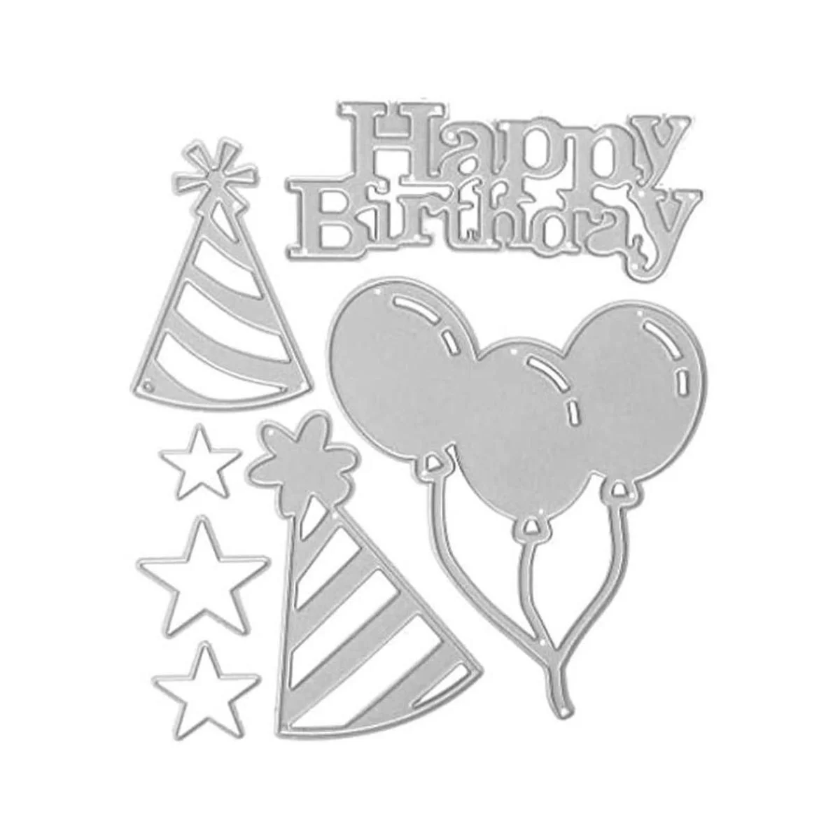 Troqueles de corte de metal para feliz cumpleaños, un paquete de globos con forma de estrella de dos sombreros, decoración de fiesta de cumpleaños, troqueles para hacer tarjetas, herramientas de grabación en relieve, álbumes de recortes, troqueles de manualidades grabados