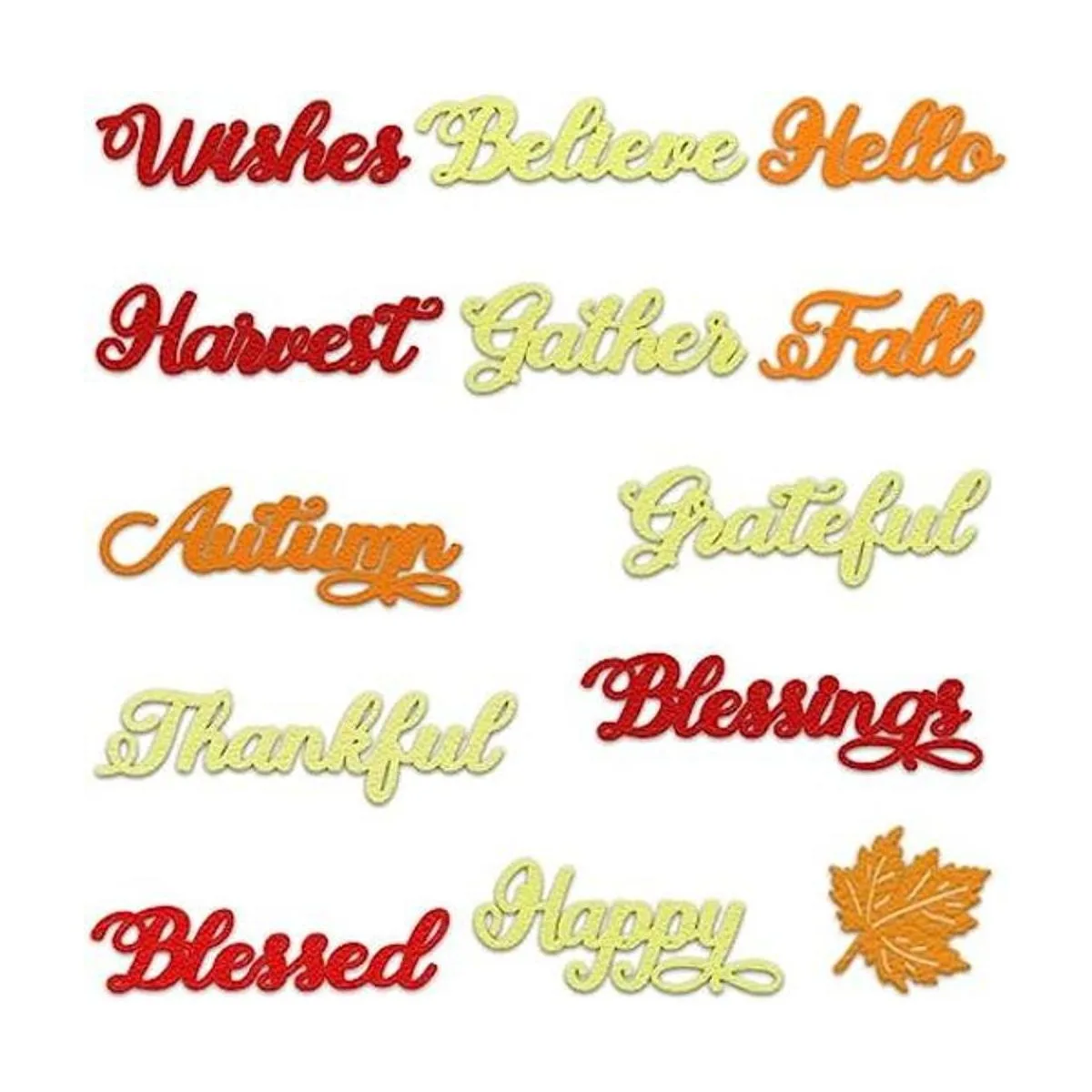 Diseño: este es el troquel de corte de otoño, incluyendo letras de otoño troqueladas, troquelado Thankful, troquelado de hoja de arce. Puedes utilizar el juego de troqueles de palabras de Acción de Gracias para tarjetas, diarios, manualidades, regalos o cualquier otra creación manual.