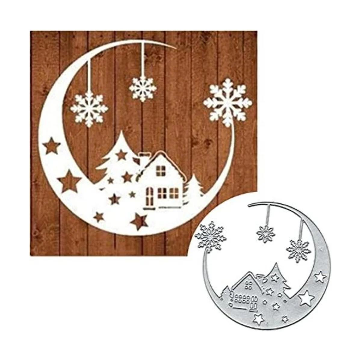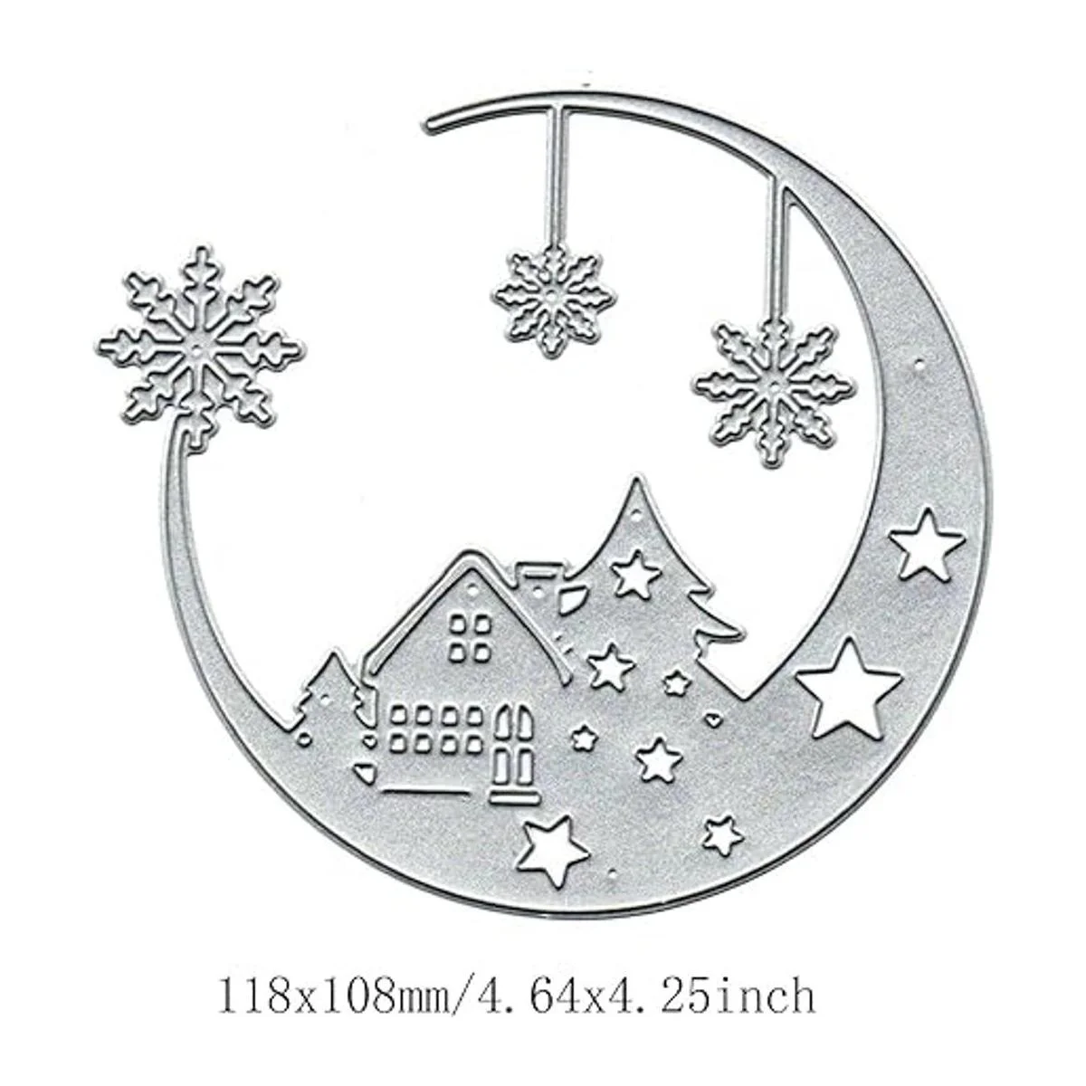Troqueles de luna de copo de nieve de Navidad, decoración de árbol de Navidad, diseño de flores de nieve, plantillas de corte de metal, plantillas de troqueles, moldes de tarjetas de invitación, libro de recortes, grabación en relieve para hacer tarjetas