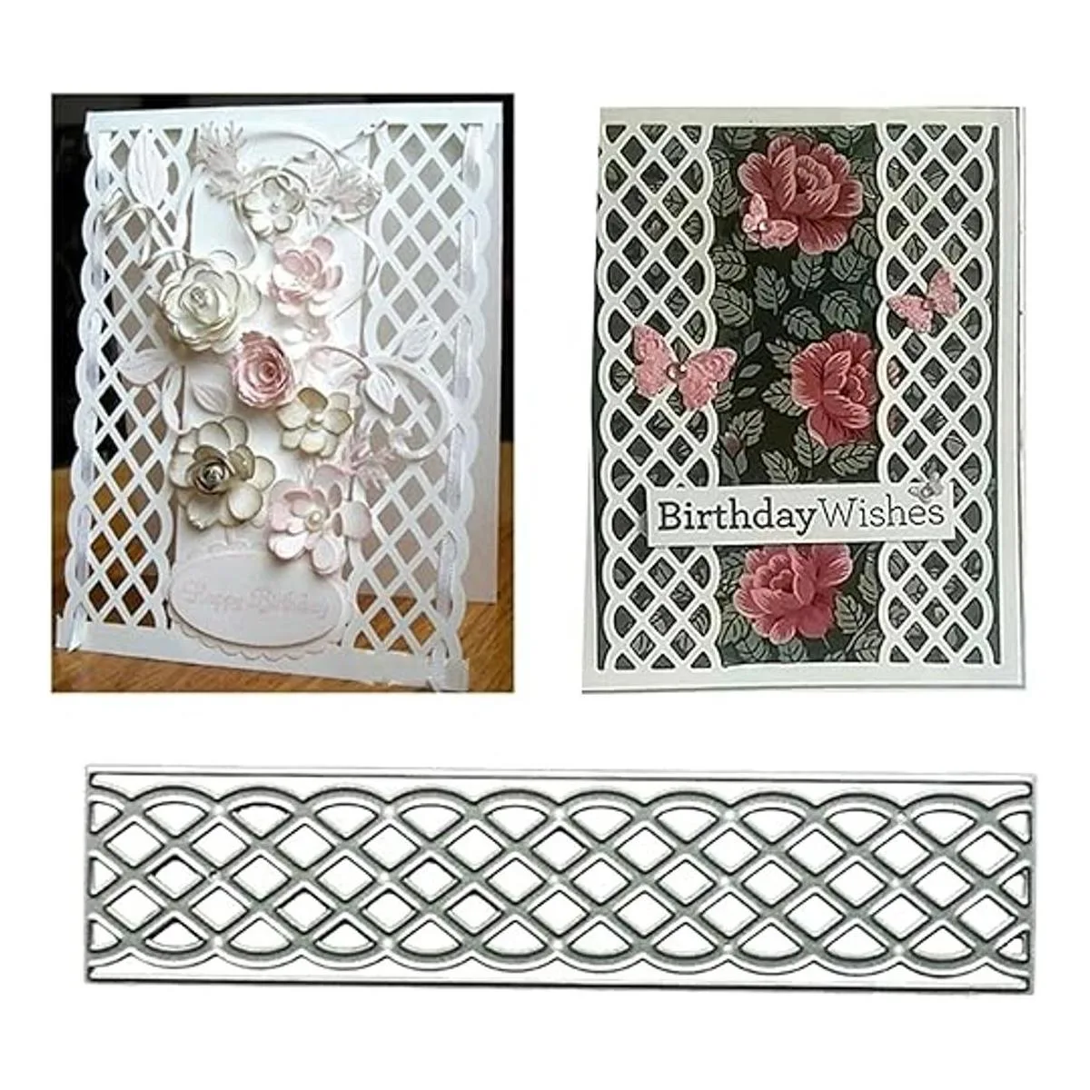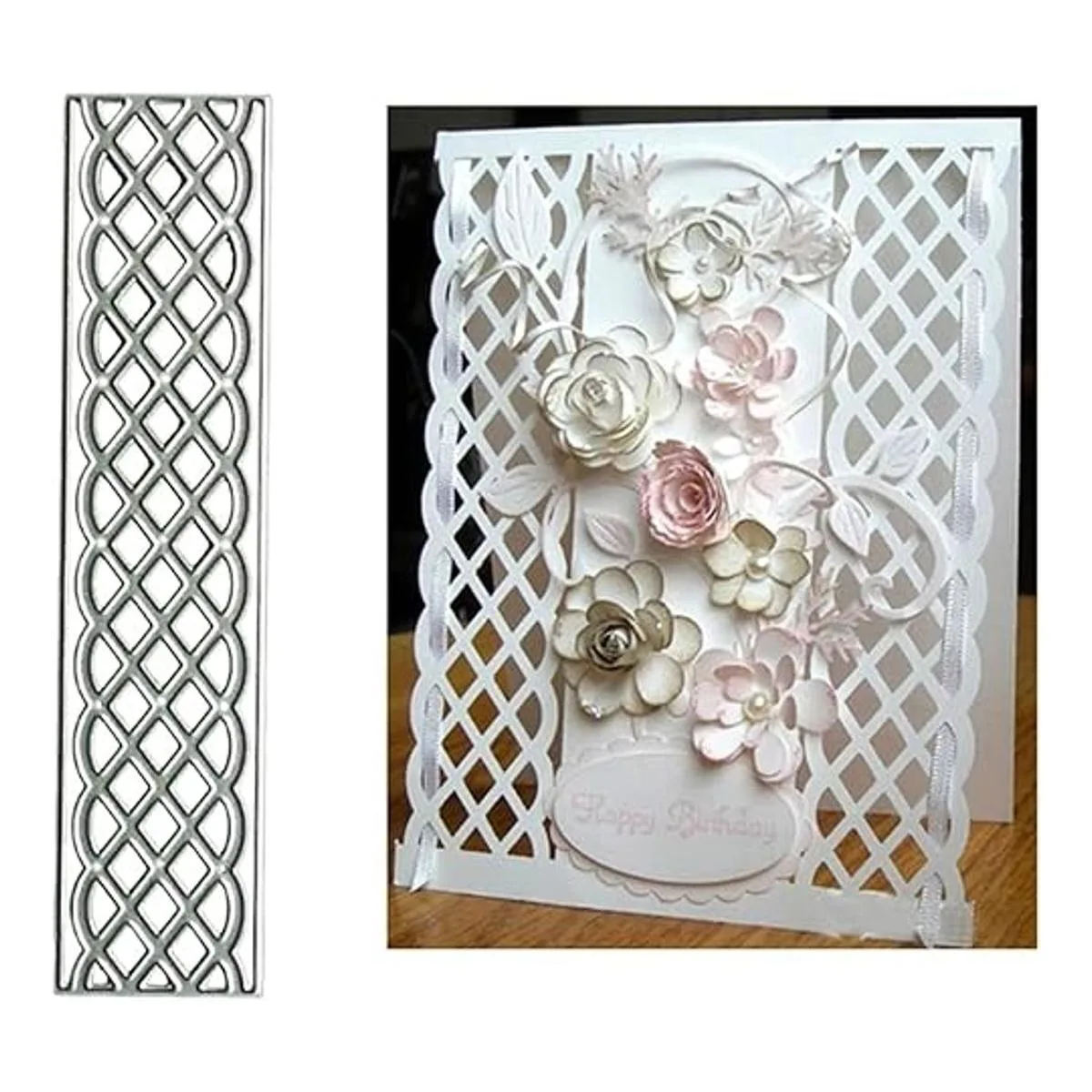 Troqueles de metal con borde de cuadrícula a rayas, plantillas de corte de borde de encaje para manualidades, álbumes de recortes, fotos, papel decorativo en relieve para hacer tarjetas de álbumes de recortes