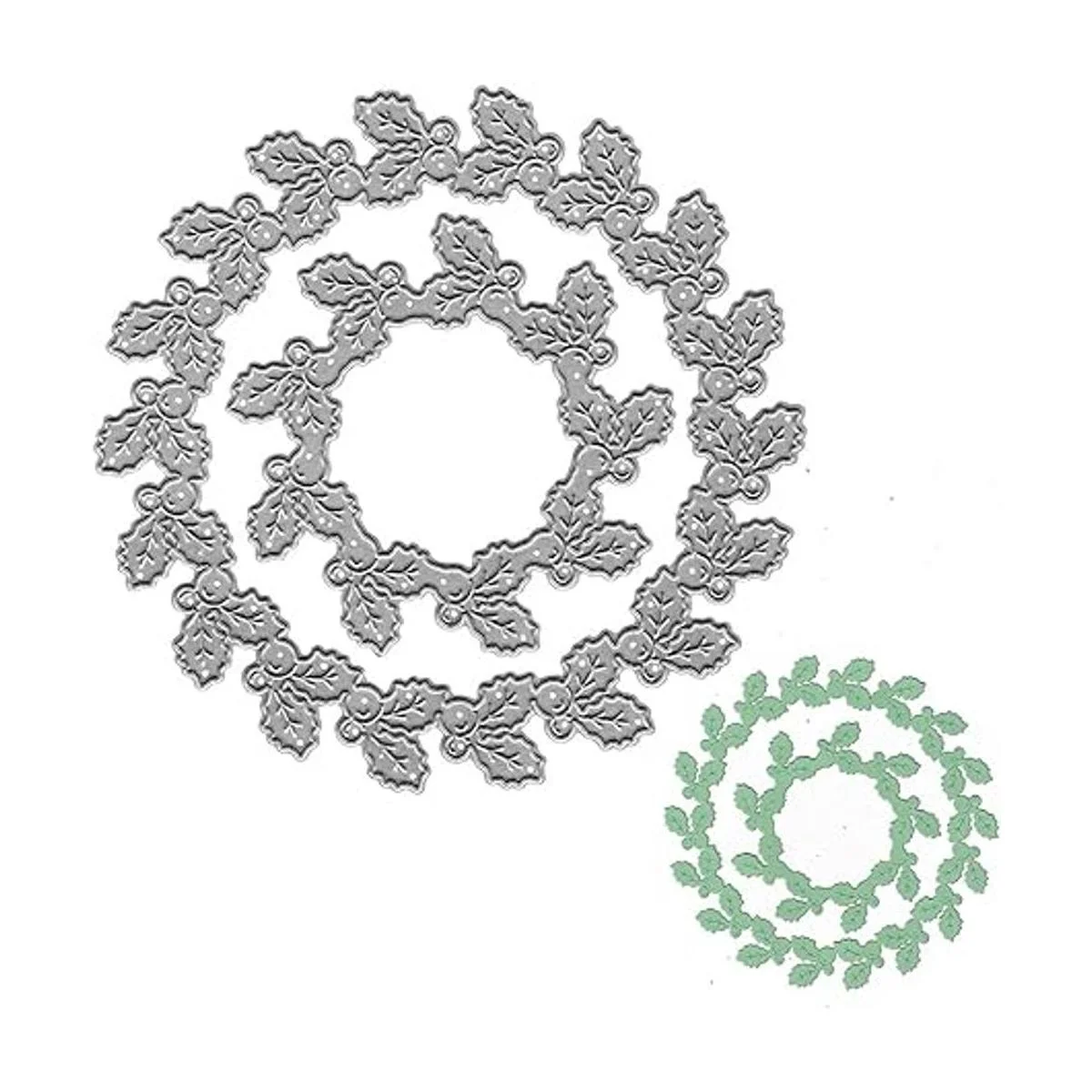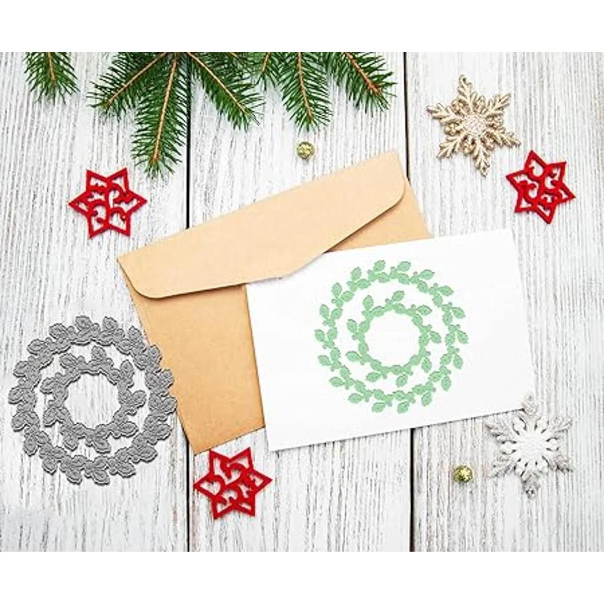 Troqueles de metal con dos coronas de Navidad, dos coronas de Navidad troqueladas, plantillas para tarjetas de recortes y álbumes de manualidades, decoración de tarjetas de papel
