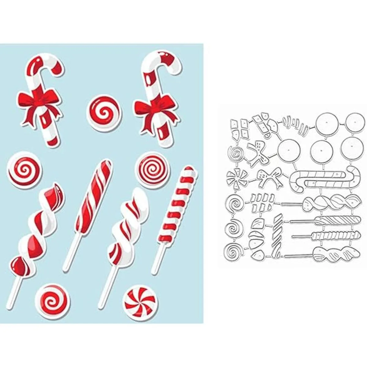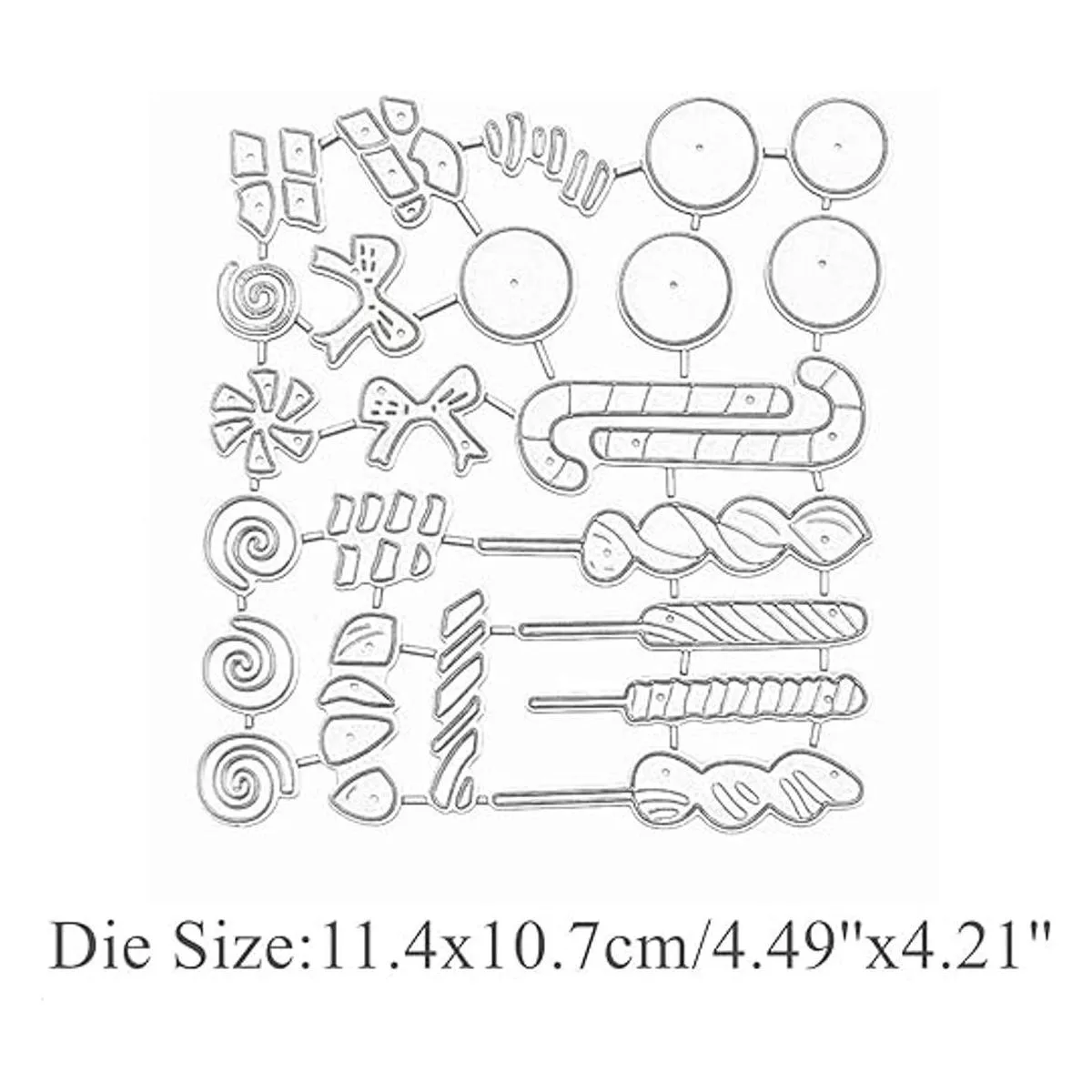 Color y tamaño: color: plateado. Tamaño: 4.5 x 4.2 in. El paquete incluye: el juego de troqueles de corte contiene 1 unidad/juego de plantillas de metal con patrón de caramelo navideño.