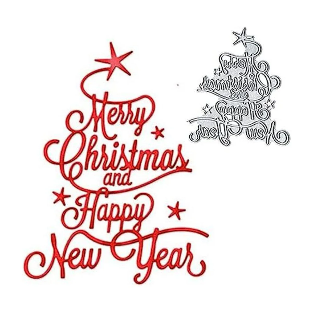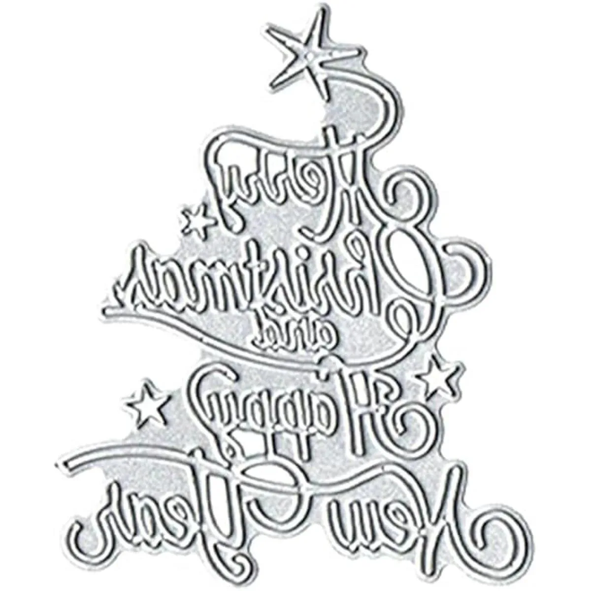 Patrón y tamaño: forma de árbol de Feliz Navidad, Feliz Año Nuevo, 4.2 x 3.3 in aproximadamente. Plantillas troqueladas de metal para álbumes de recortes, álbumes de fotos, troqueles decorativos de papel en relieve para álbumes de recortes, tarjetas, suministros de fabricación de álbumes de recortes.