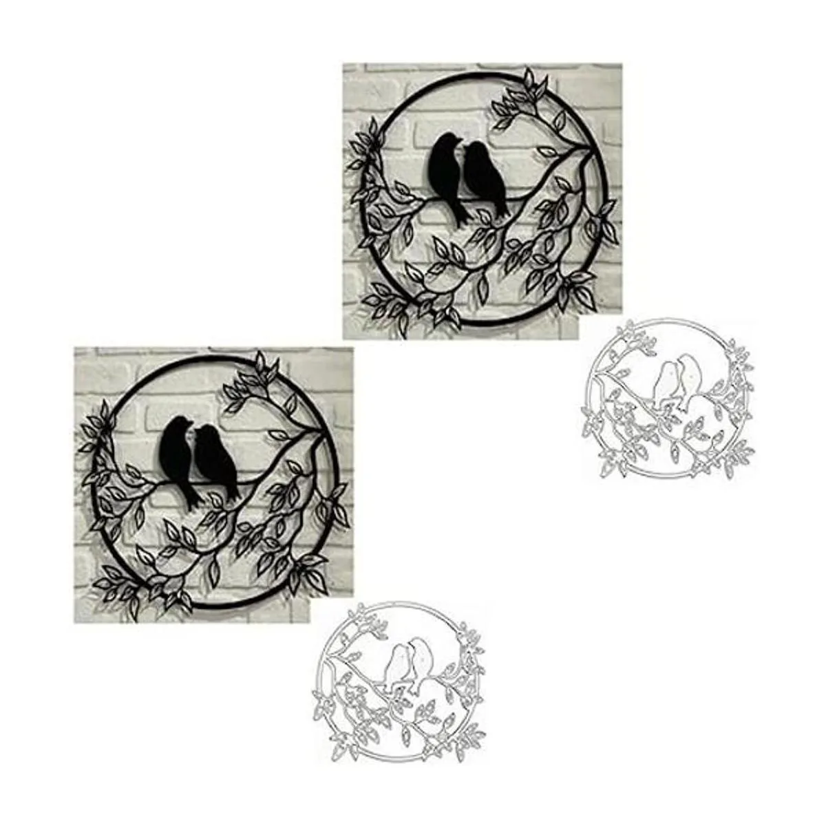 Troqueles de metal para pájaros, hojas de flores de pájaros en ramas, marco redondo, plantillas de corte de borde natural para manualidades, álbumes de recortes, fotos, papel decorativo en relieve para hacer tarjetas de álbumes de recortes