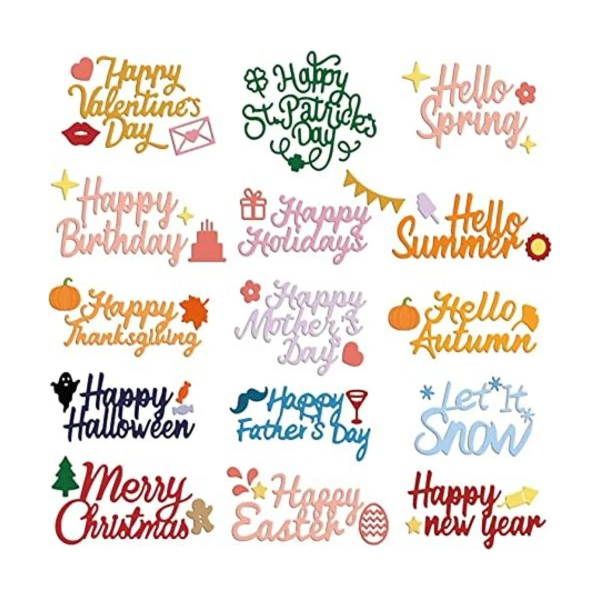 Diseño de palabras sinceras: tenemos 15 palabras diferentes de vacaciones en nuestro paquete, incluyendo Feliz Navidad, Feliz cumpleaños, Feliz Día de San Valentín, Feliz Acción de Gracias, Feliz Pascua, Feliz Halloween, Feliz Día del Padre, Feliz Día de la Madre, Feliz Año Nuevo, etc. Satisface tus diversas necesidades de fabricación de tarjetas de felicitación para expresar tus deseos sinceros y saludos a amigos y familiares