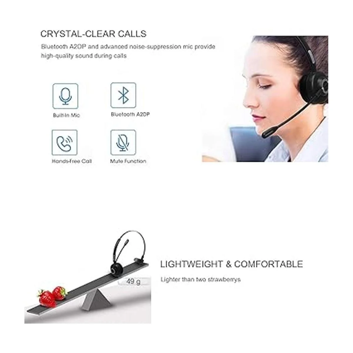Cómodo y ligero: el auricular pesa 1.76 oz, más ligero que un huevo y no causará la sensación de abrumamiento en tu cabeza, y te ofrece una experiencia ultra cómoda durante largos períodos de tiempo. Disfruta de una mayor comodidad con la diadema acolchada y flexible y micrófonos giratorios de 330.