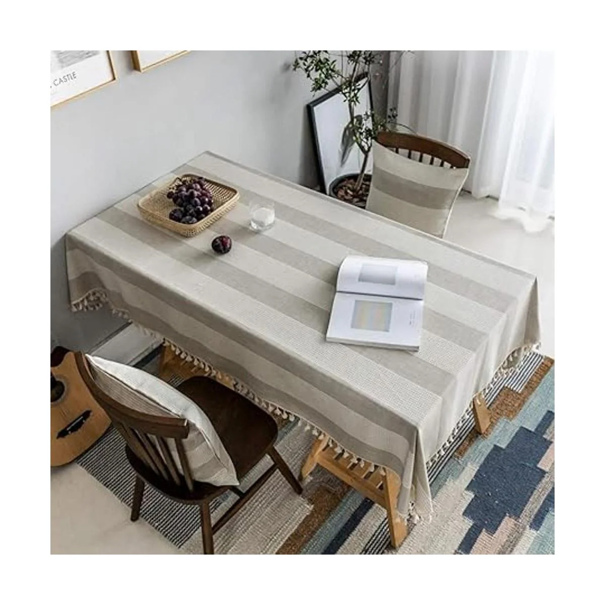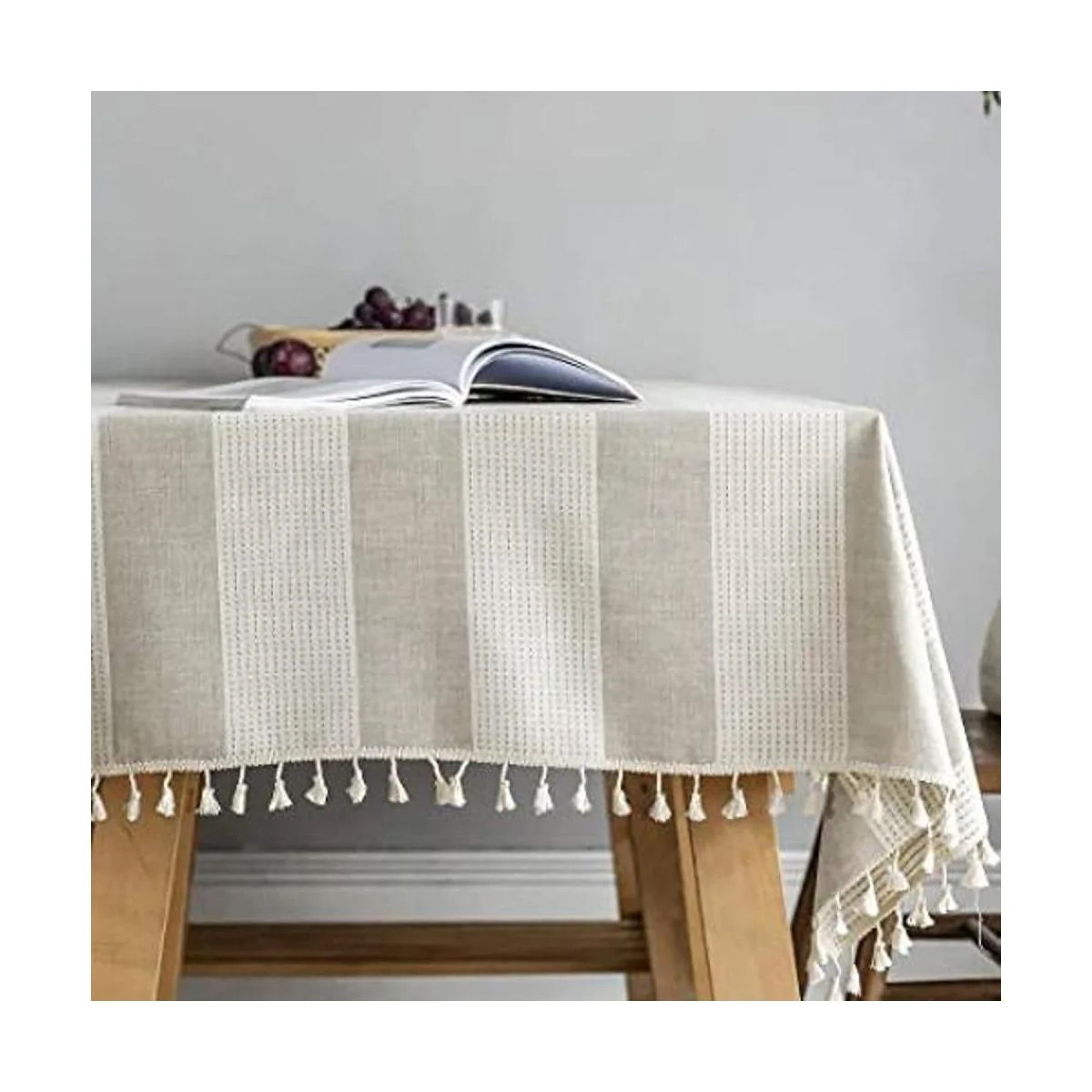 TruDelve Mantel de lino de algodón resistente para mesa rectangular con borlas para mesa de comedor, cubierta de mesa a prueba de polvo para decoración de mesa 53.9 x 97.6 in, color gris