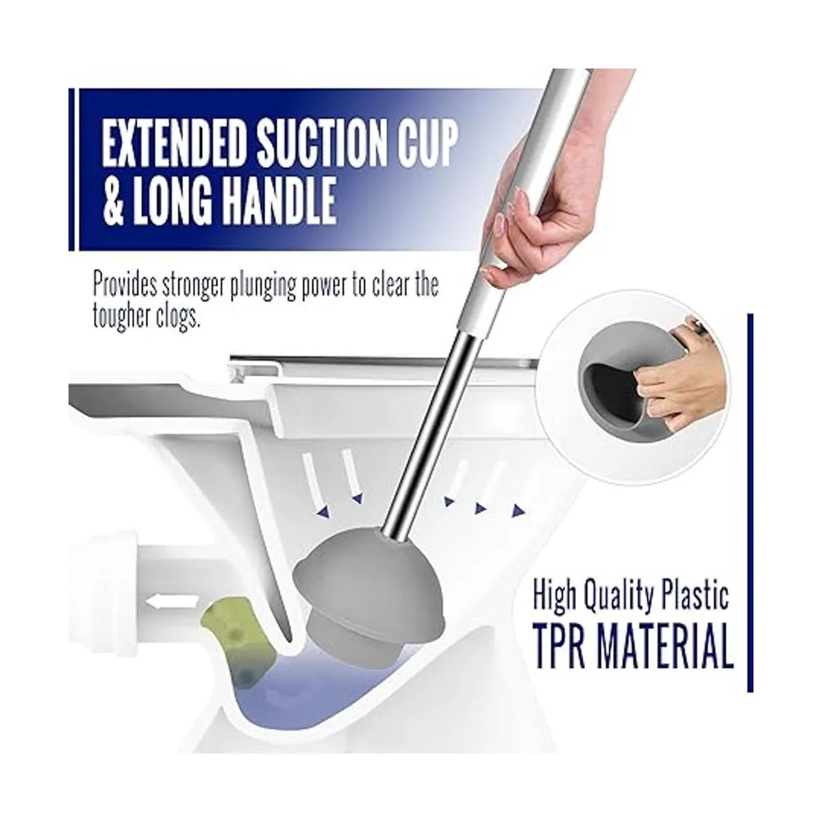 Cepillo de alta calidad: cepillo de fácil agarre con cerdas hecho de materiales duraderos. No es suave ni duro y limpia el inodoro de manera eficiente sin dañar el esmalte del inodoro es un juego único de émbolo y cepillo
