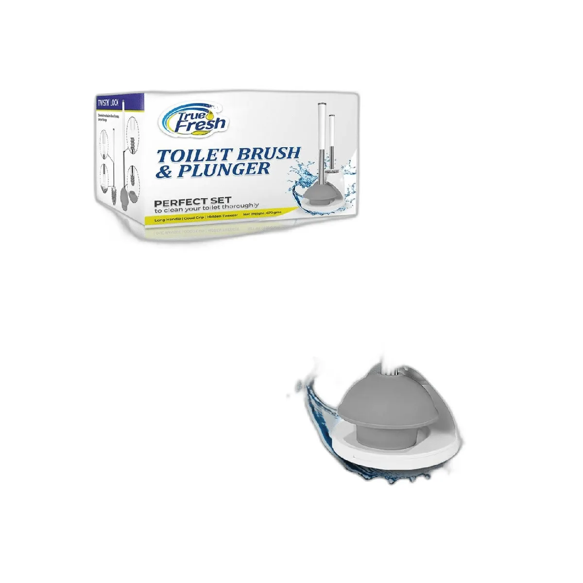 True fresh Juego de cepillo de inodoro y émbolo para baño, cepillo limpiador de inodoro, juego 2 en 1 de émbolo de inodoro y cepillo de inodoro con soporte y barra de acero inoxidable y mango de plástico