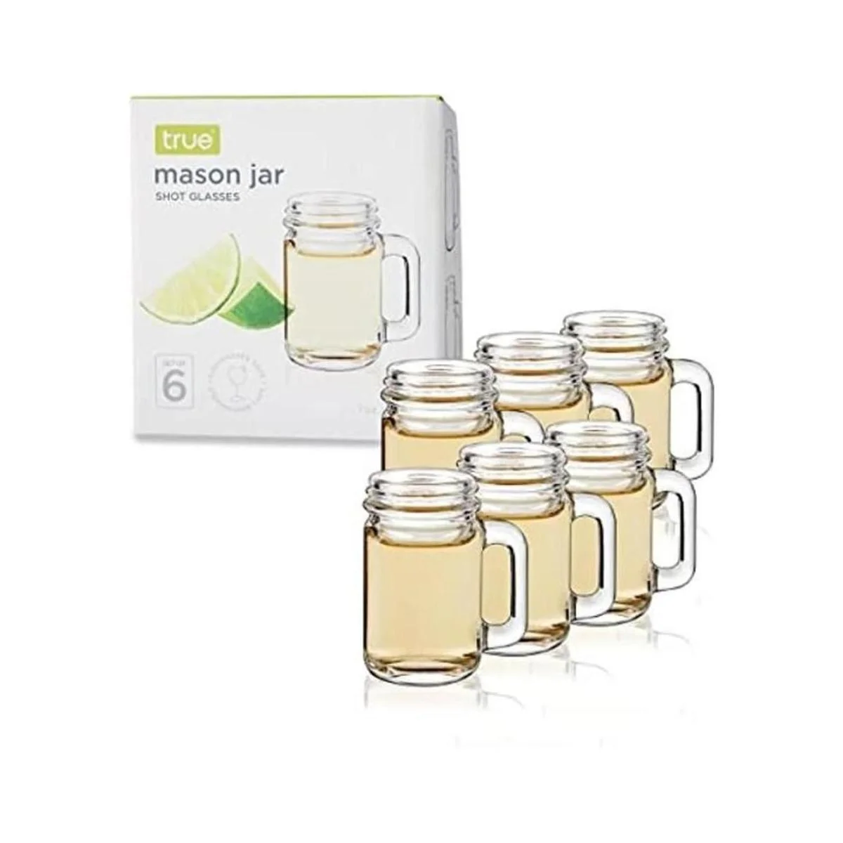 True Mason Jar Vasos de chupito, mini tarro Mason con asa, 1 onza de vidrio, juego de 6, vidrio