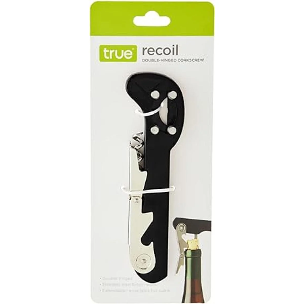 True Recoil Sacacorchos de doble bisagra clásica con cortador de papel de aluminio extensible de 4 ruedas, juego de 1