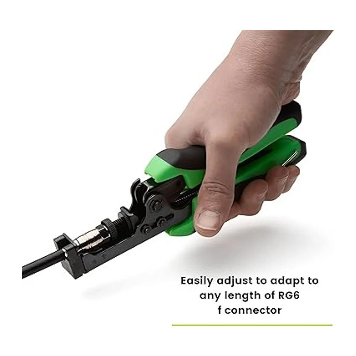 TrueCABLE Herramienta de compresión para conector F, ajustable para conectores RG6, RG 6 Quad Shield y RG59 F, crimpadora de cable coaxial